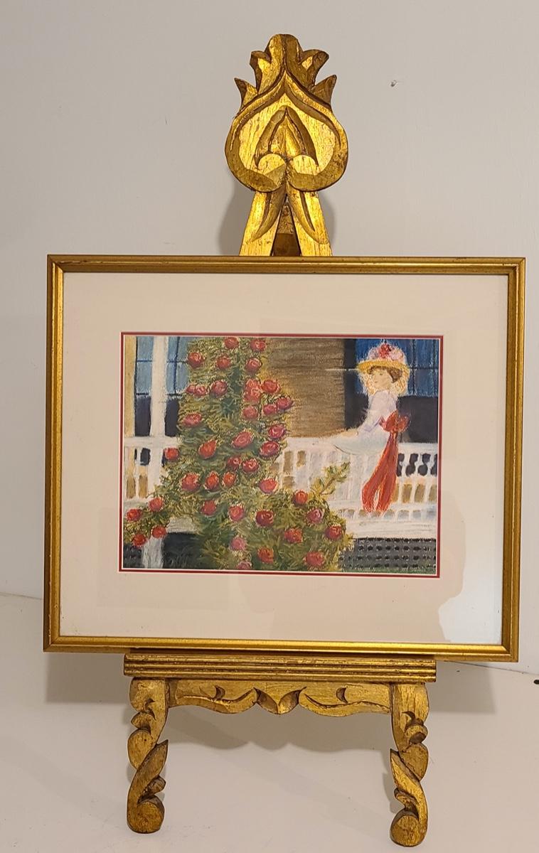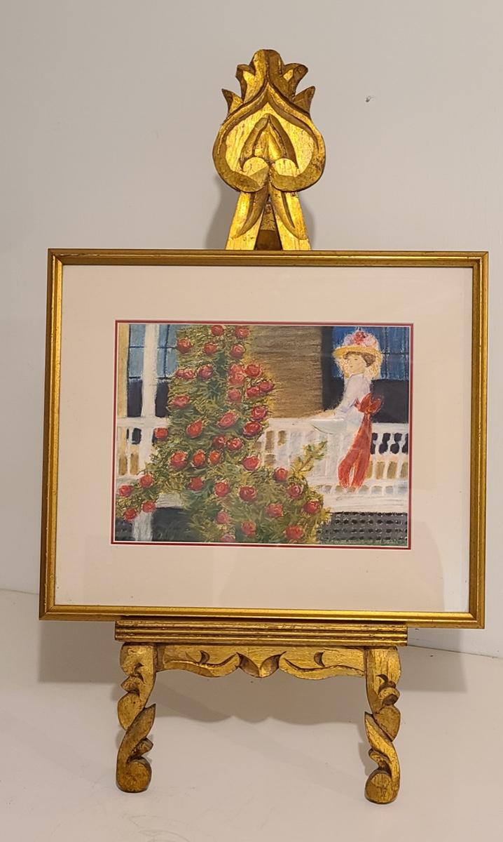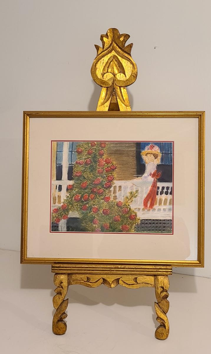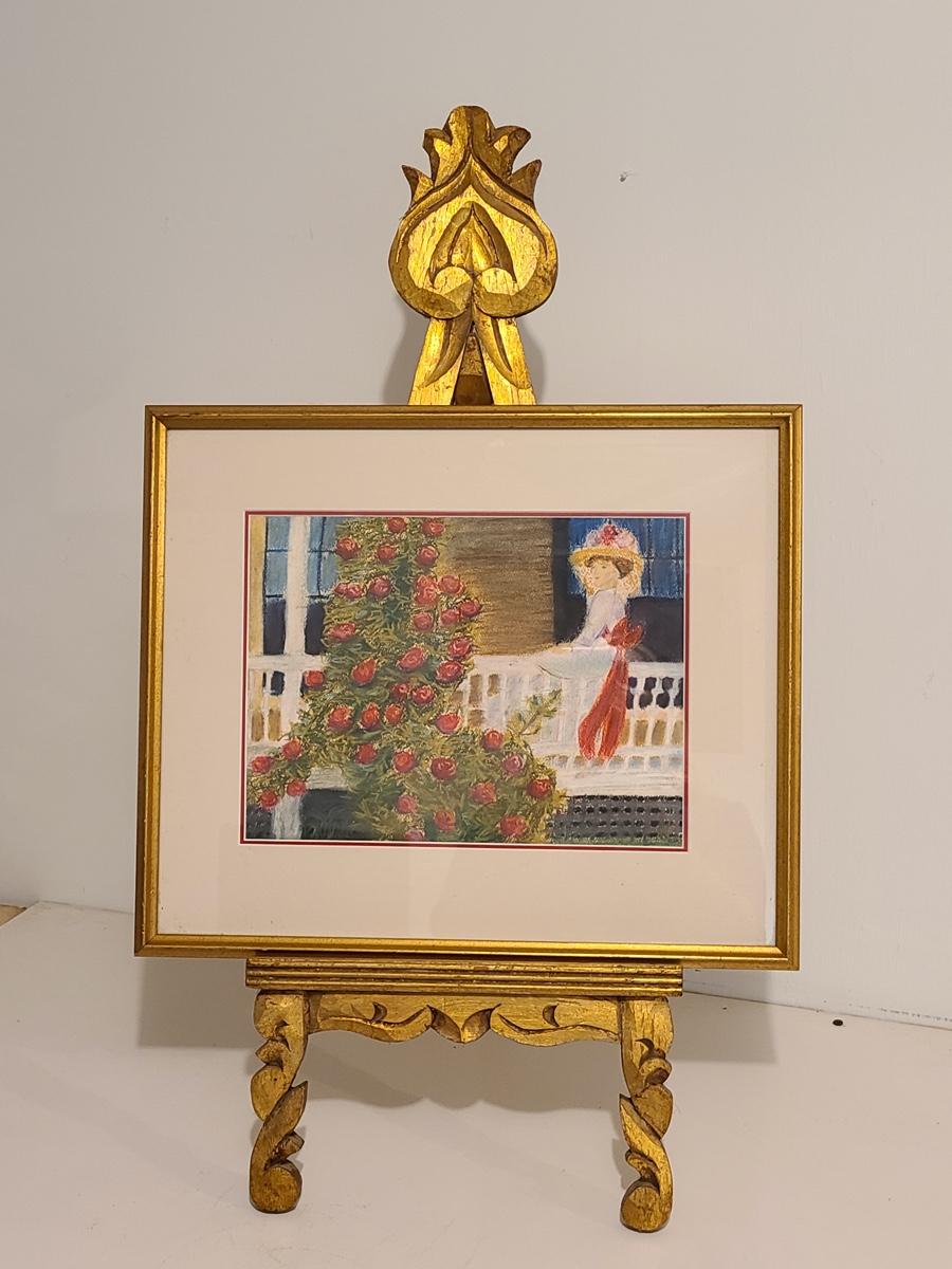 Lot 346: Watercolor on Vintage Gold Gilt, Wood Easel
