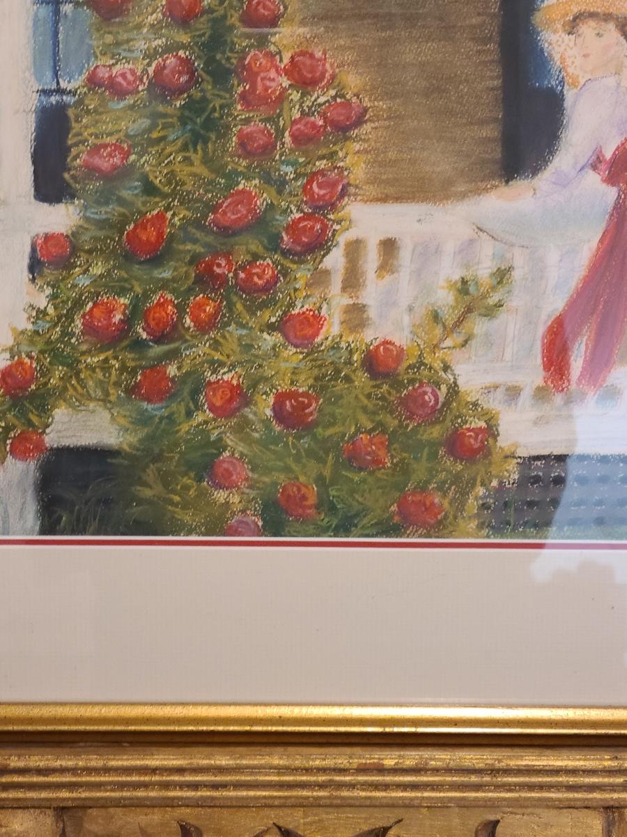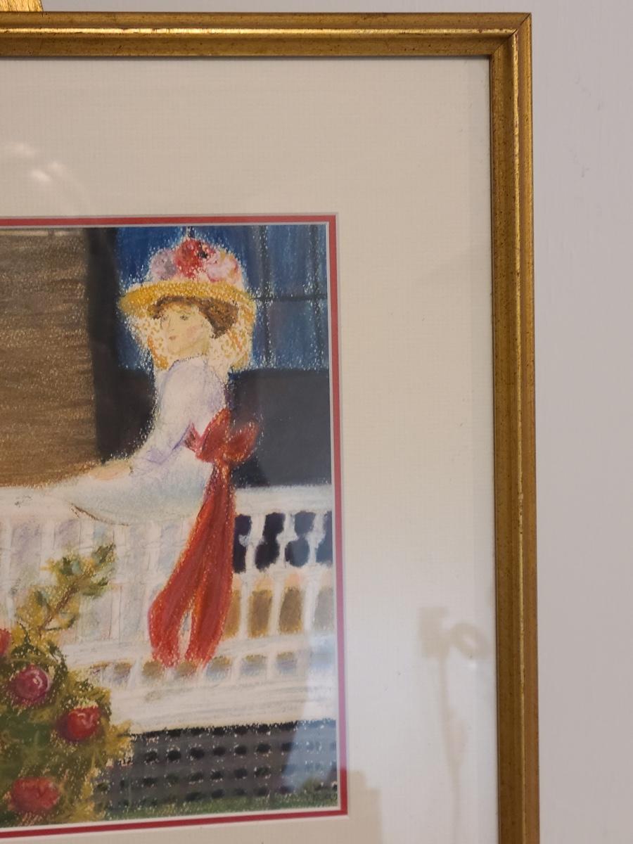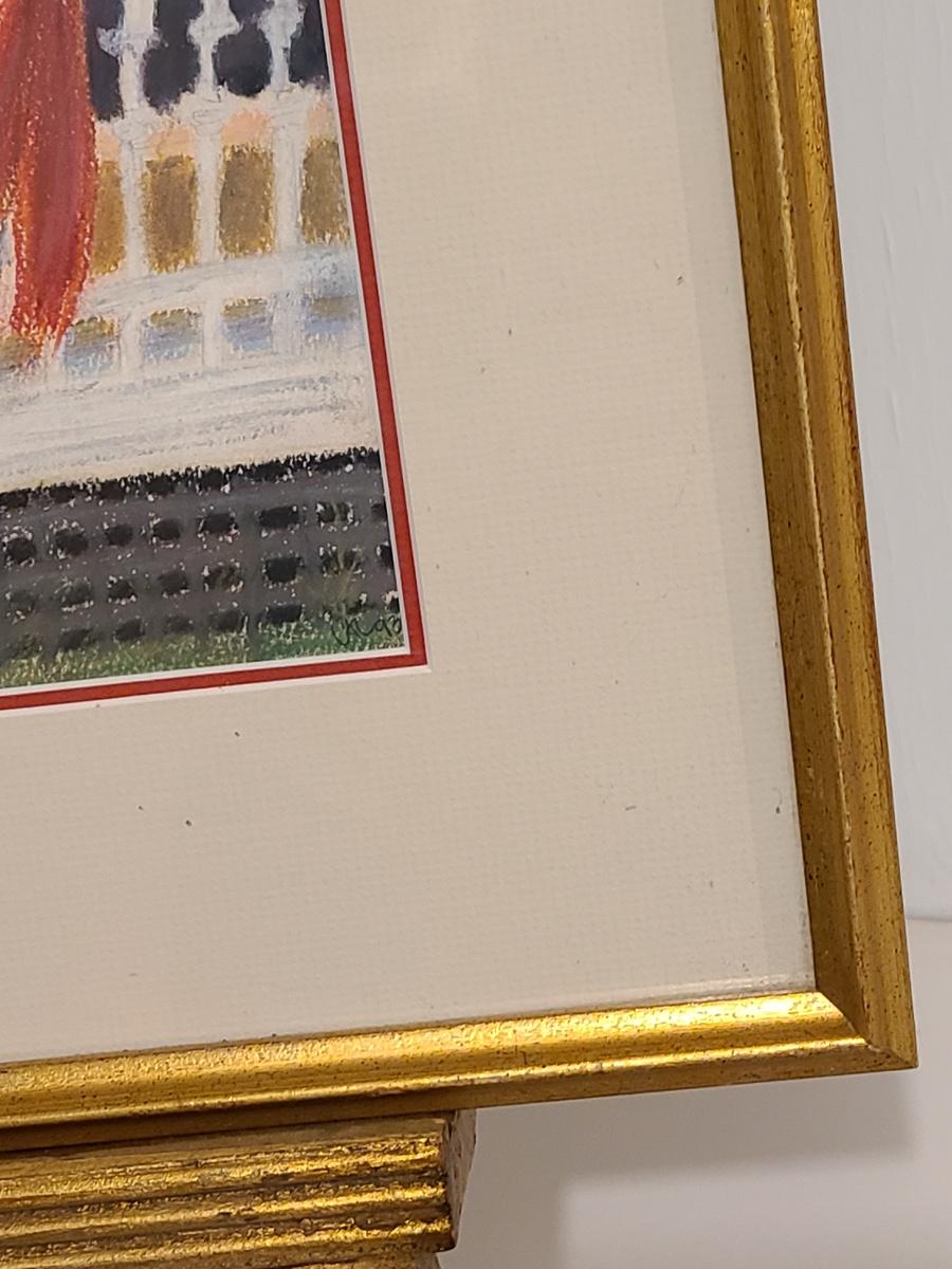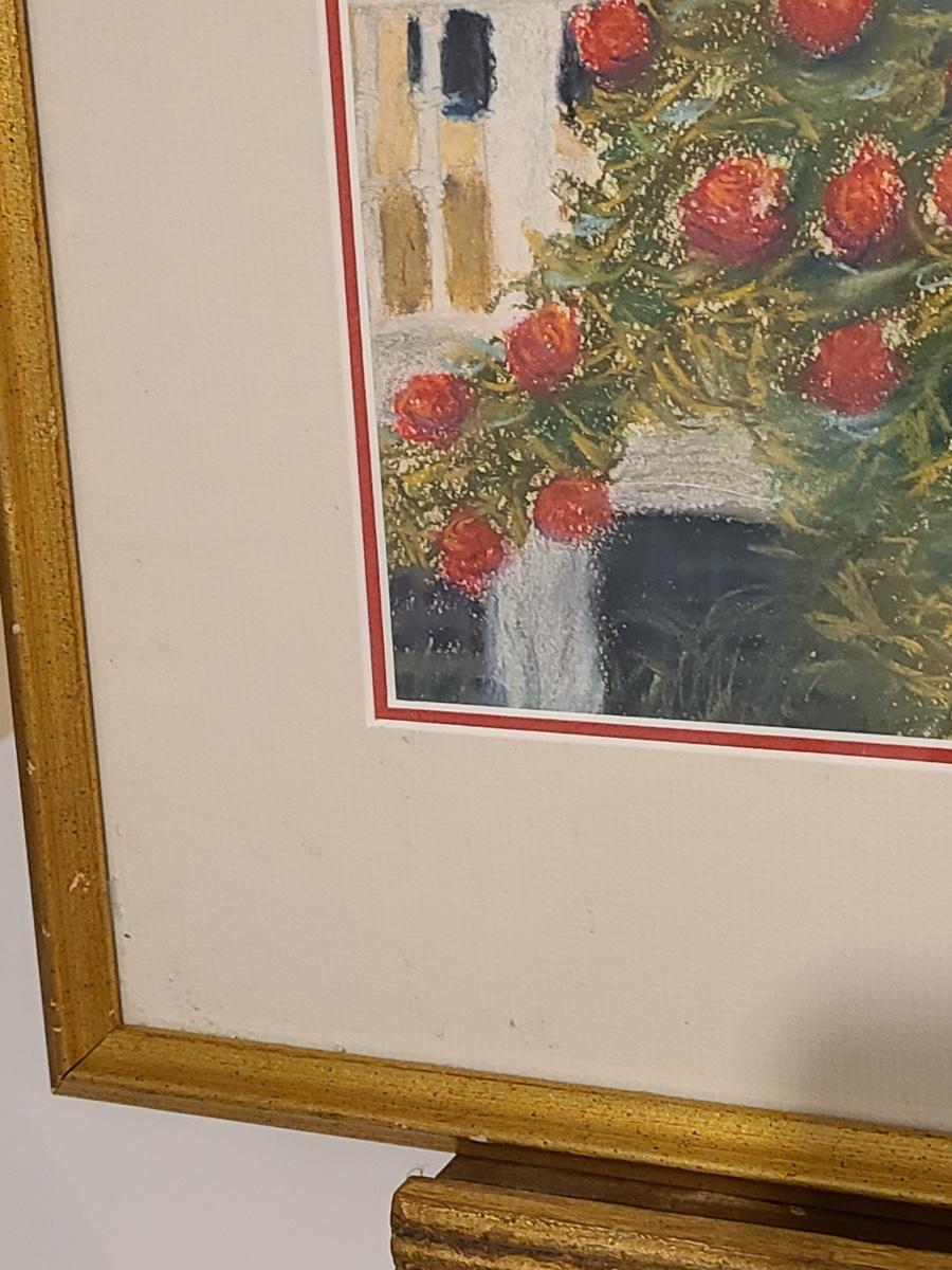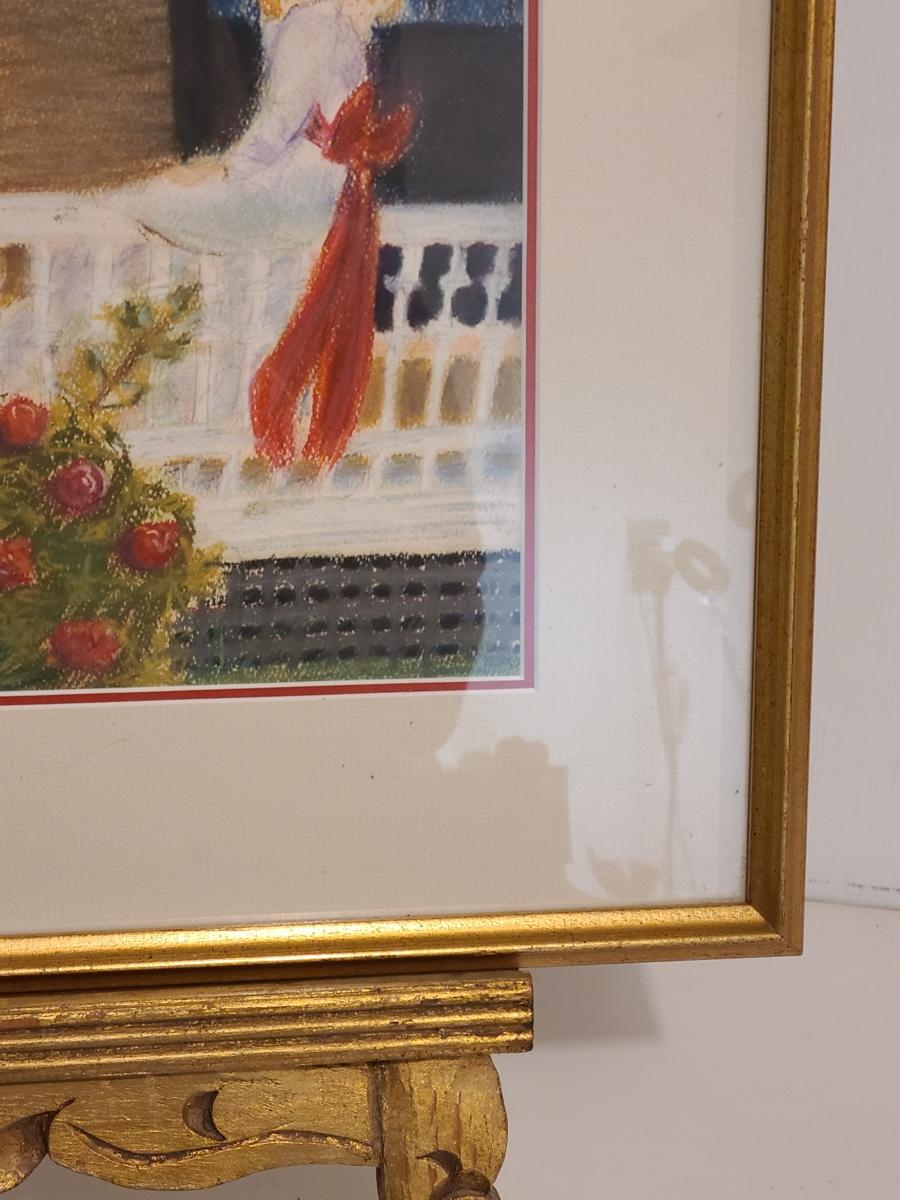 Lovely watercolor done by local artist, and a wood gold, gilt easel. Please see all pictures. The pictures show condition, measurements if taken, and what is included in the lot. Due to the large amount that we photograph and the time frame, we are not always able to take measurements. All items unless noted, are pre-owned and have been used. If you purchased furniture, you must bring help. We do not allow one person to carry large furniture out on their own. Bring help, tools and a truck for the safety of our client’s homes, and your personal safety. Company policy. Thank you