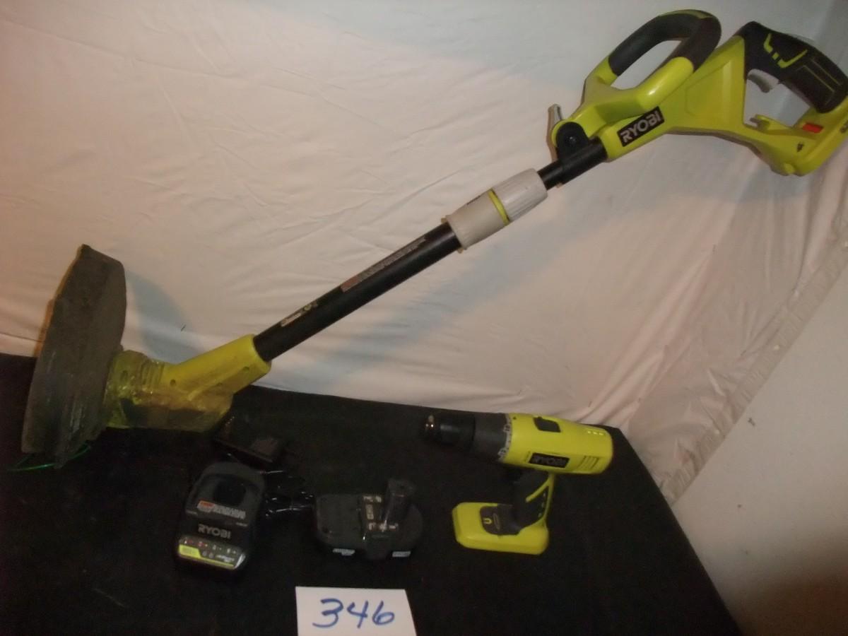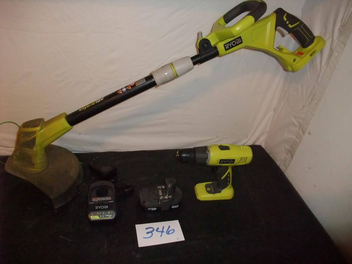 LOT 346 RYOBI CORDLESS DRILL, RYOBI WEED EATER/EDGER COMBO, BATTERY, AND BATTERY CHARGER
