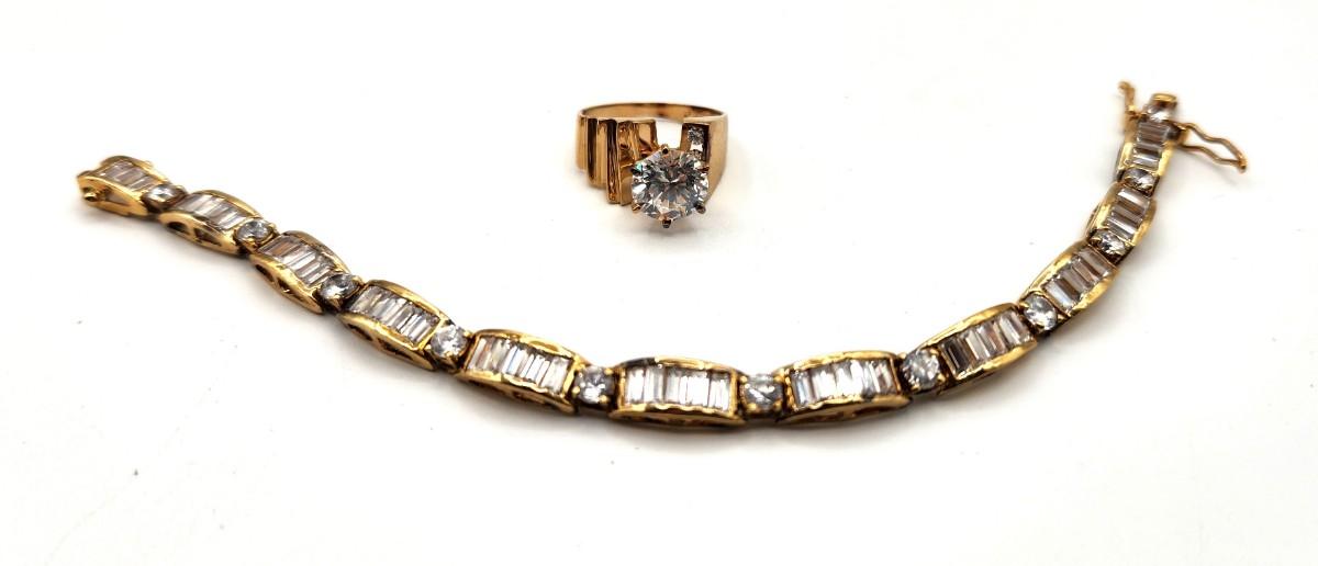 Lot #346 Sterling (Gold Plate over Silver) and CZ bracelet - sterling/CZ ring