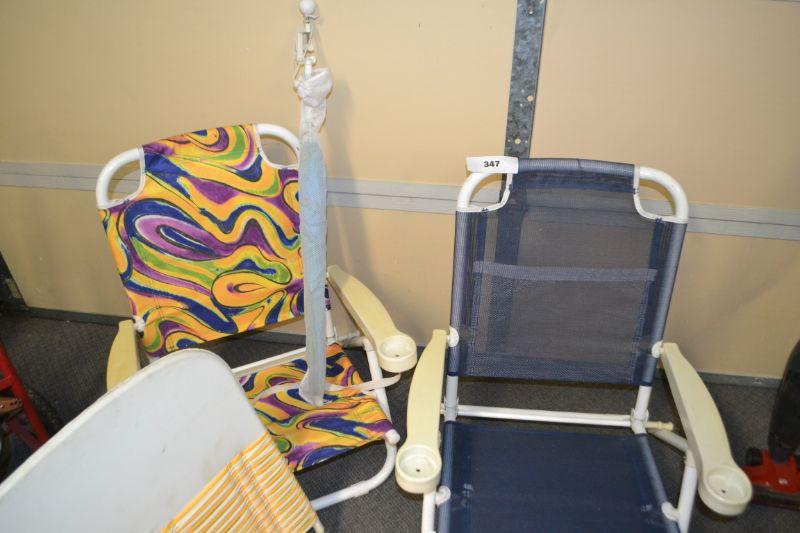 LOT 347  BEACH CHAIRS AND UMBRELLA