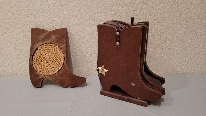 Lot 347: Western Themed Cowboy Boot Coaster Set