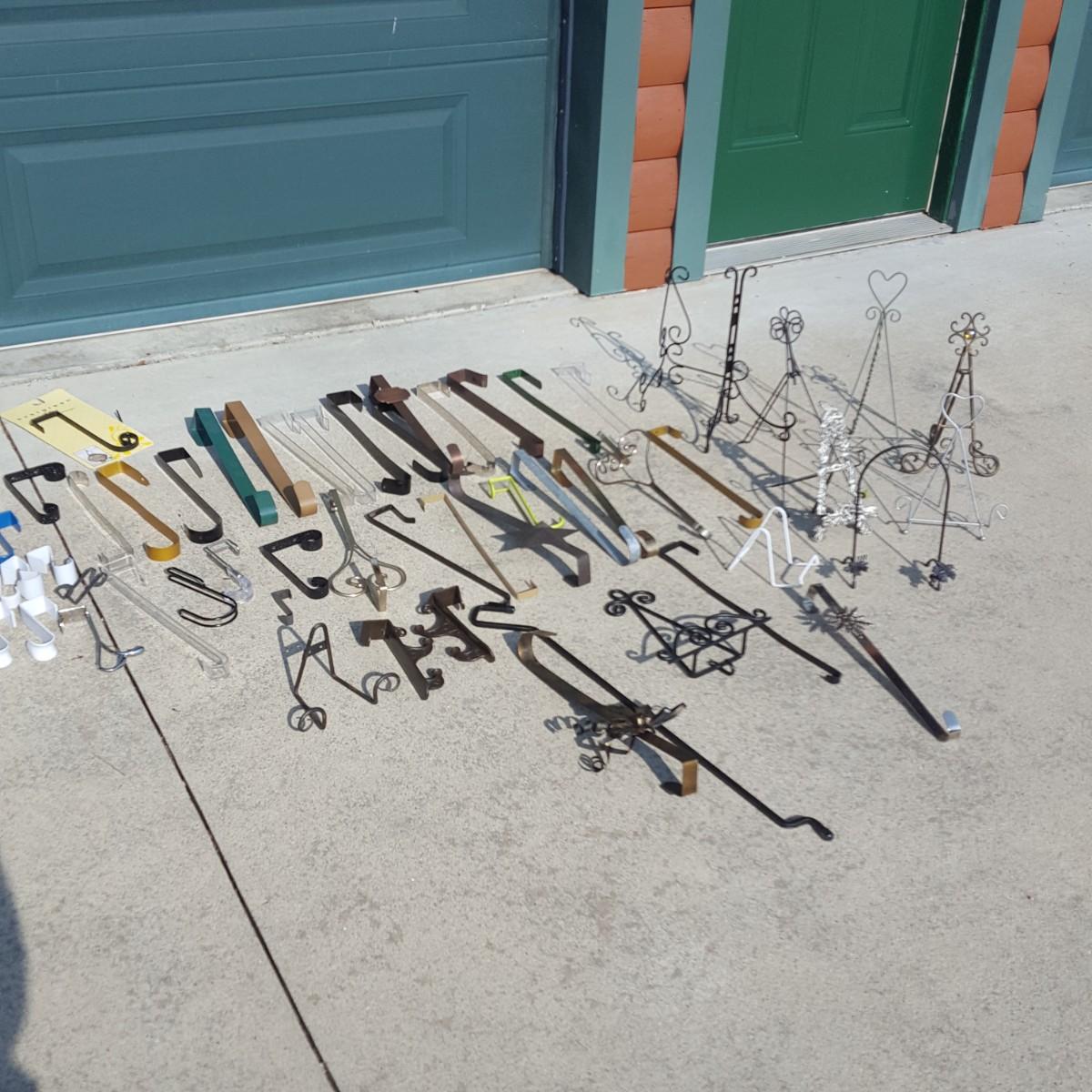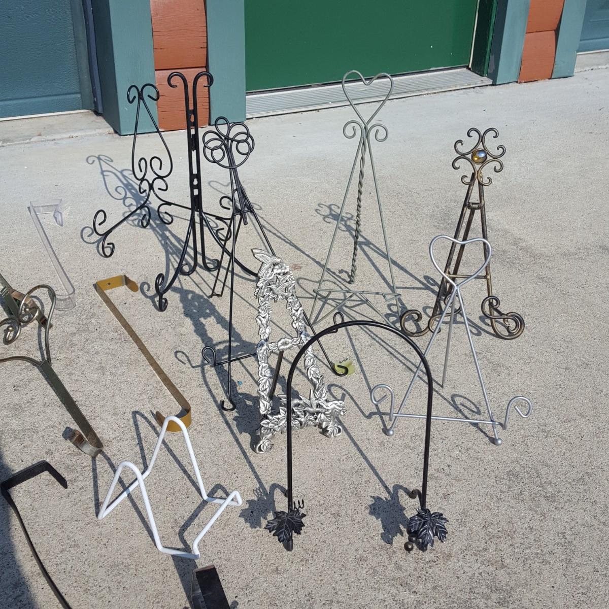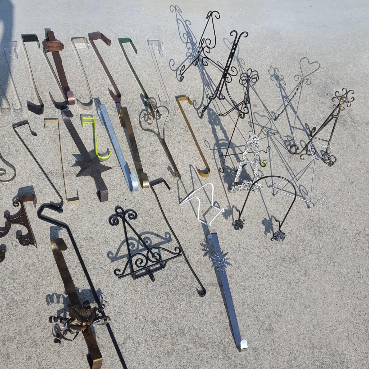 If you need to hang a wreath or sign on your door, this is the lot for you! The majority of this lot is hangers for over your door and they are made from plastic and metal. This lot also contains metal picture or dish holders to display your family portrait or that china dish you inherited. Local Pick-up only.