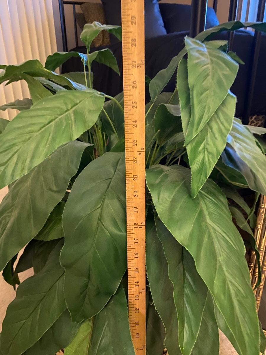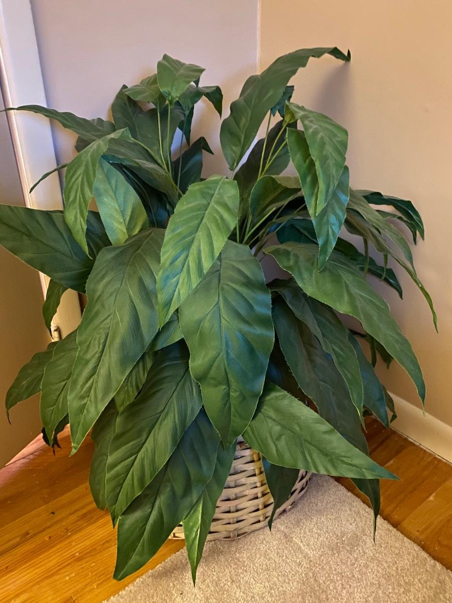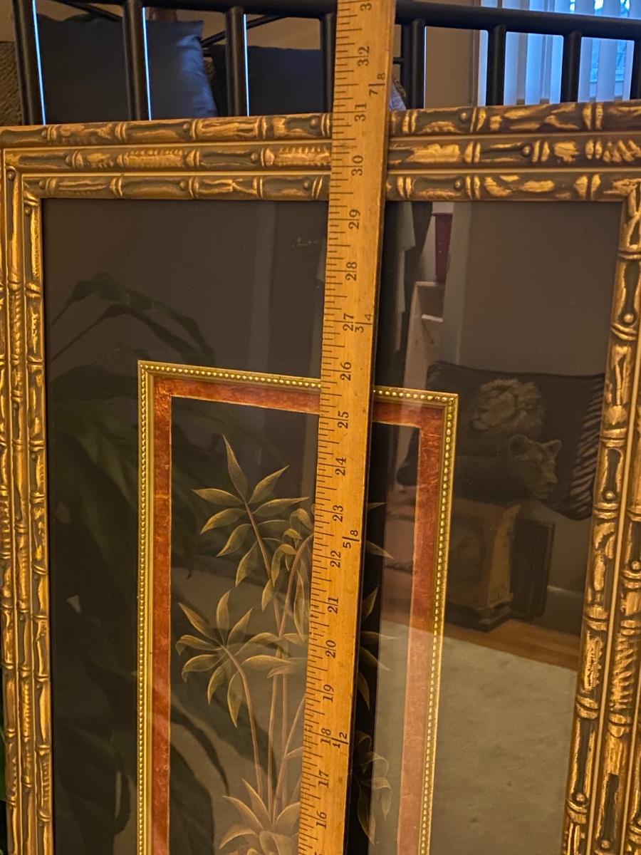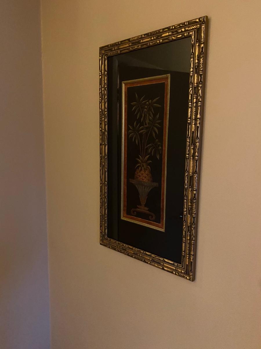 Artificial plant in a basket and framed art. Print measures 17”x 31”.