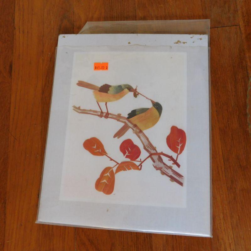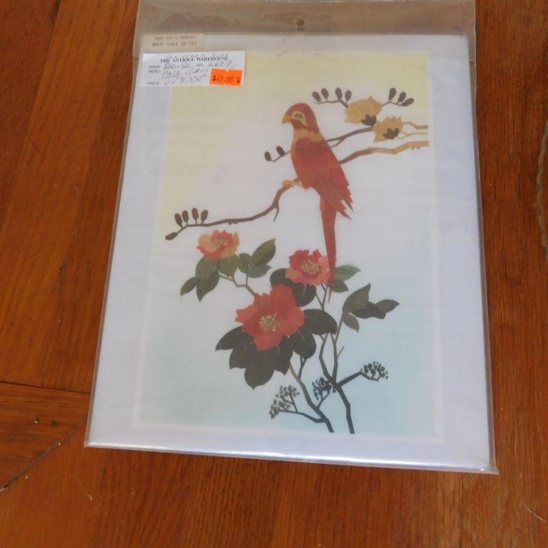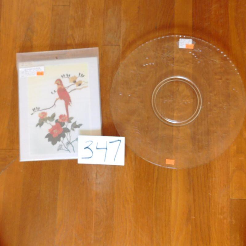 Lot 347 Chinese on Salk pier of birds and a class powder platter 14 inches long glass platter 14 inches