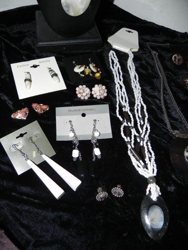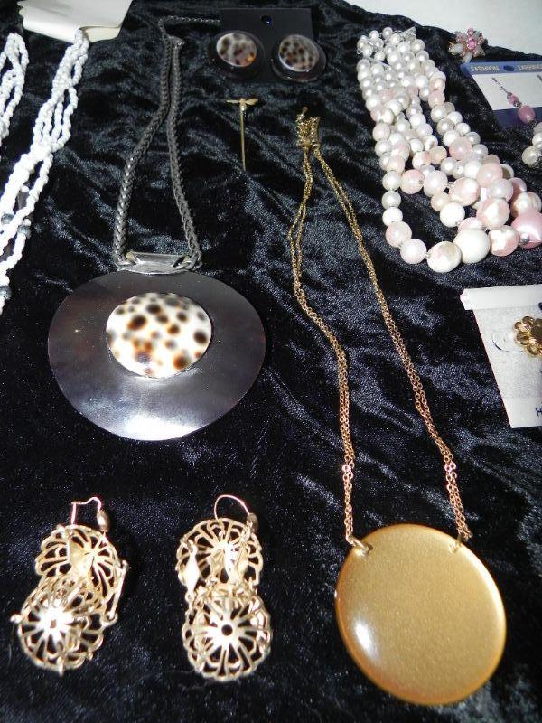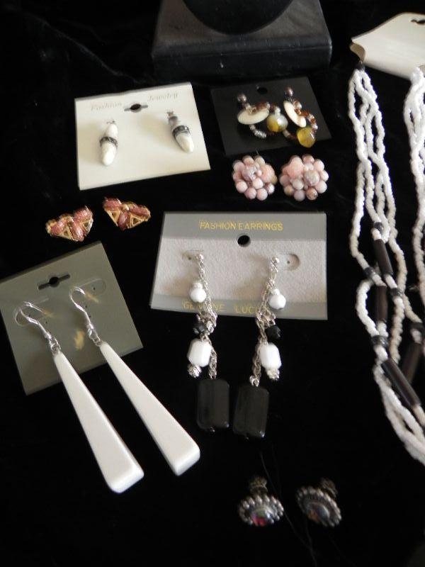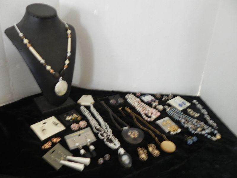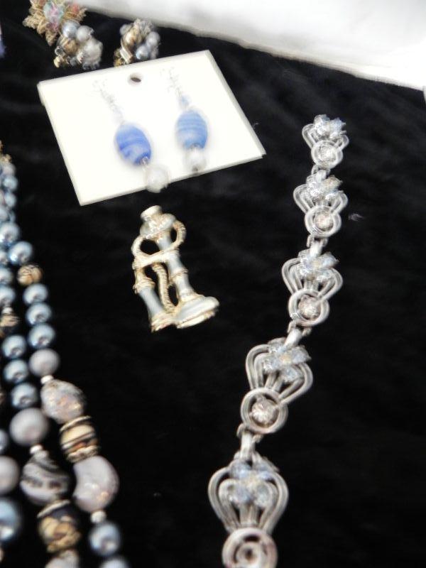 BEADED EARRINGS AND NECKLACES, SMALL PINS, BRACELET