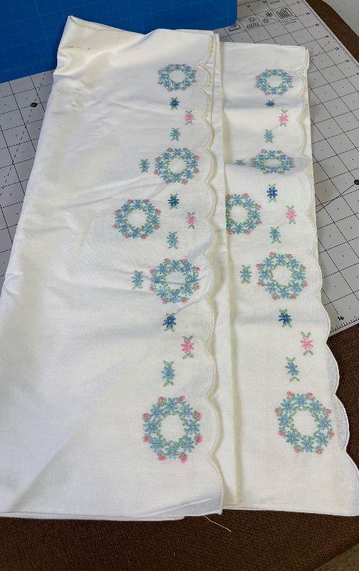 Lot #347 PAIR OF Embroidered Std  Pillow Case white with blue