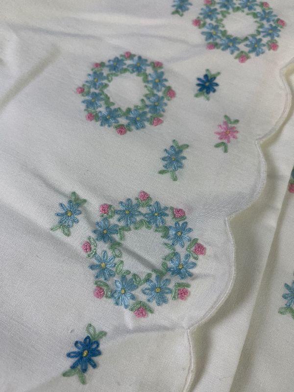 Lot #347 PAIR OF Embroidered Std Pillow Case white with blue