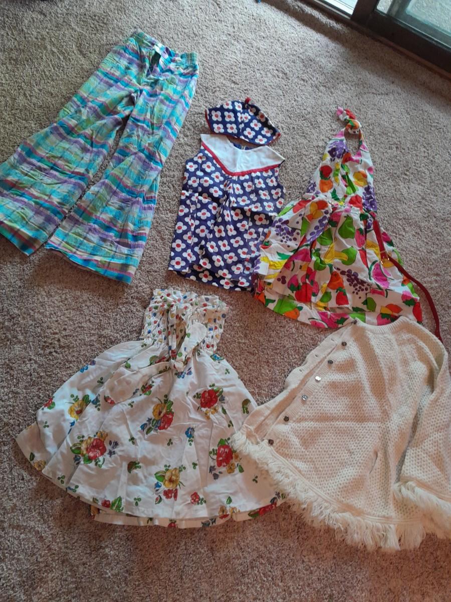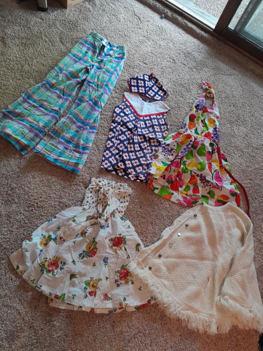 VINTAGE GIRL'S OUTFITS WRANGLER BELL BOTTOMS AND DRESSES APPROX. SIZE 7-8