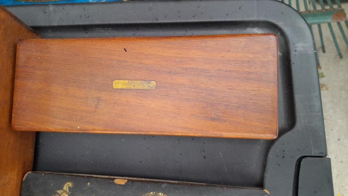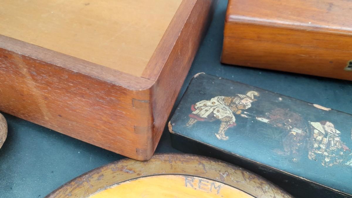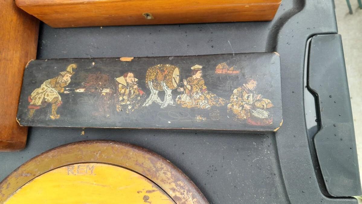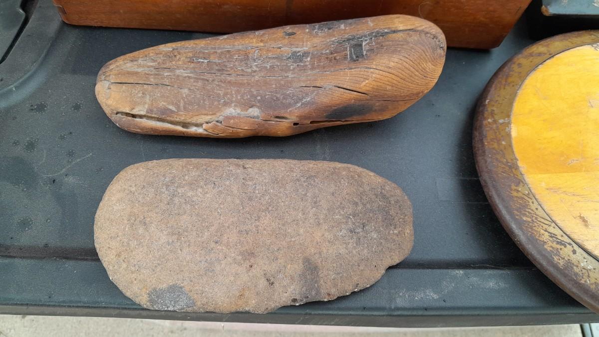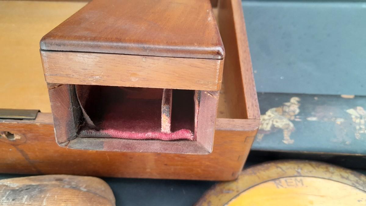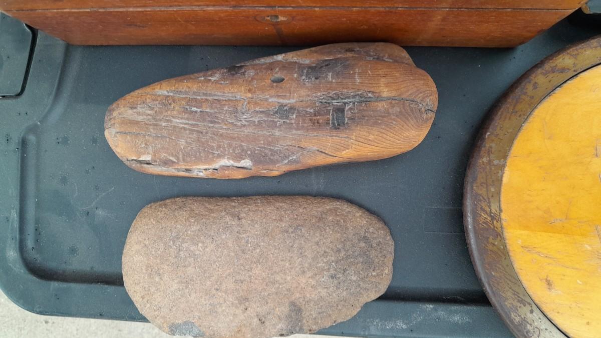 VINTAGE LINDESBERG TRACK AND FIELD WOOD IRON DISKUS WITH WOODEN BOXES AND POSSIBLE ARTIFACTS