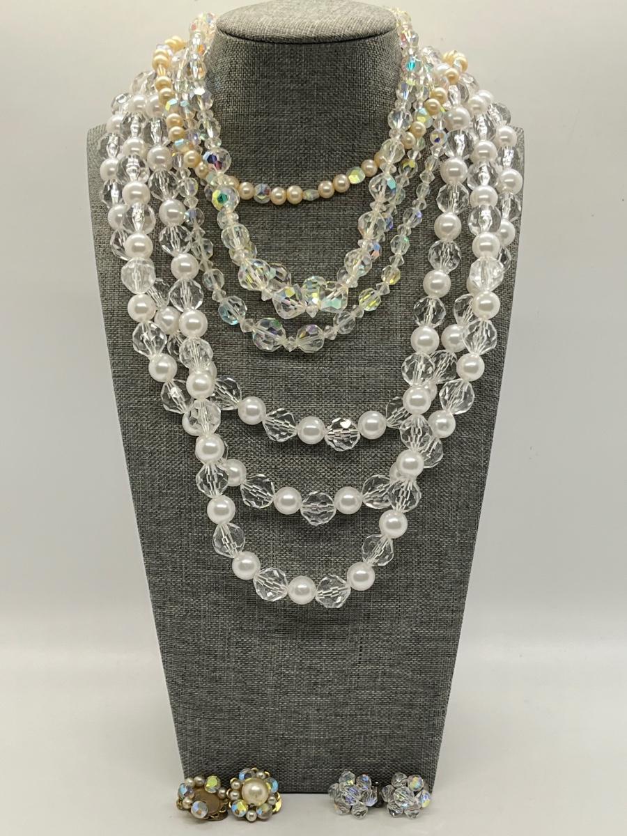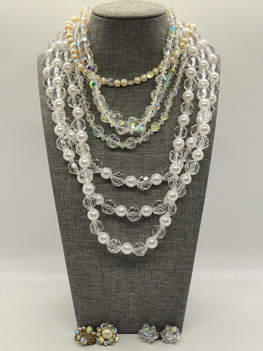 Lot 347J: Vintage Aurora Borealis Necklaces & Earrings + More