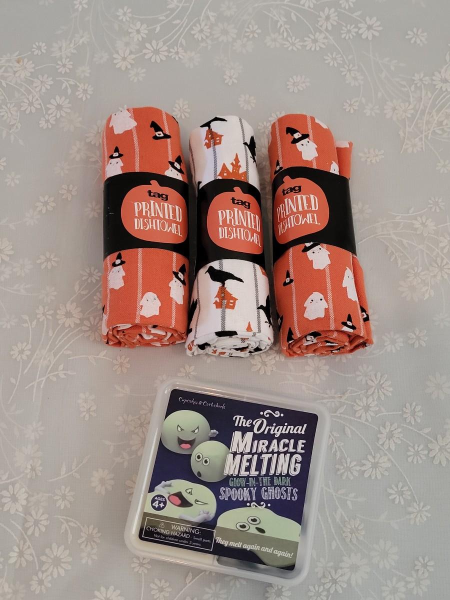 Lot 348: Halloween Dish Towels and Miracle Melting Spooky Ghosts