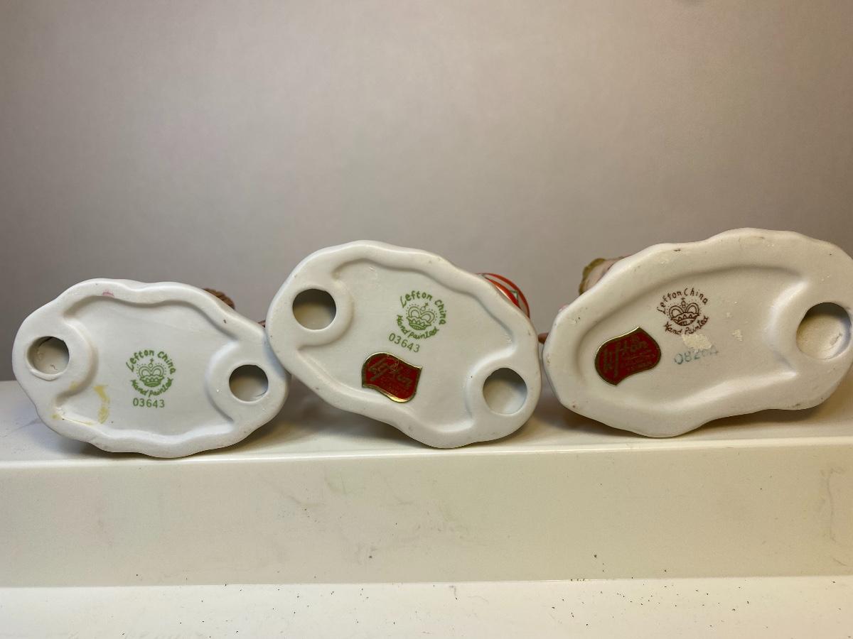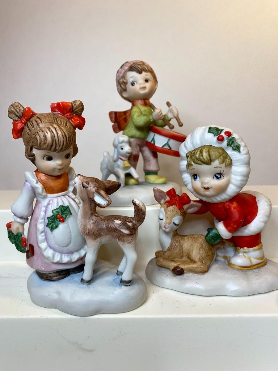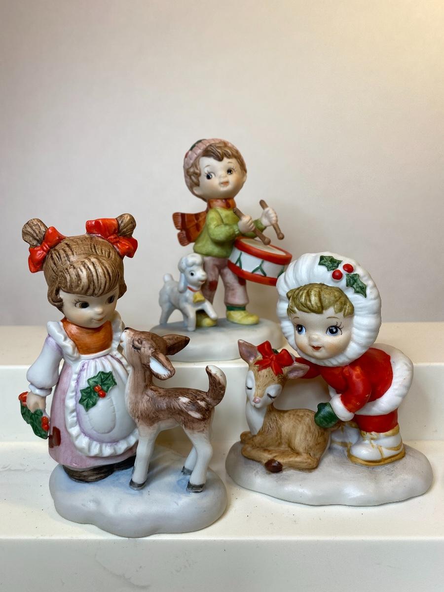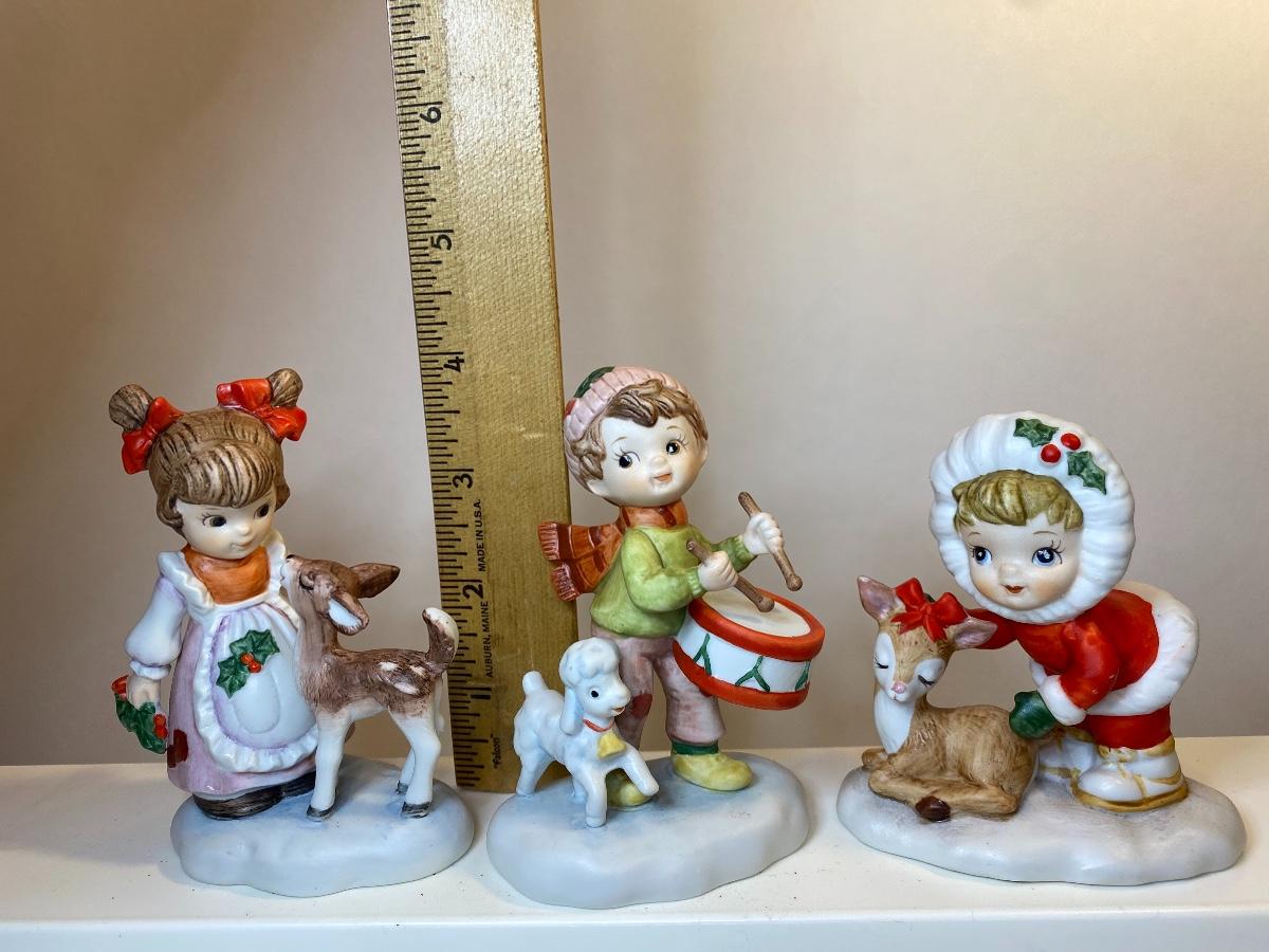Three Lefton vintage Christmas children. The pictures show condition, measurements if taken, and what is included in the lot. Due to the large amount that we photograph and the time frame, we are not always able to take measurements. All items unless noted, are pre-owned and have been used, and are untested. Thank you.