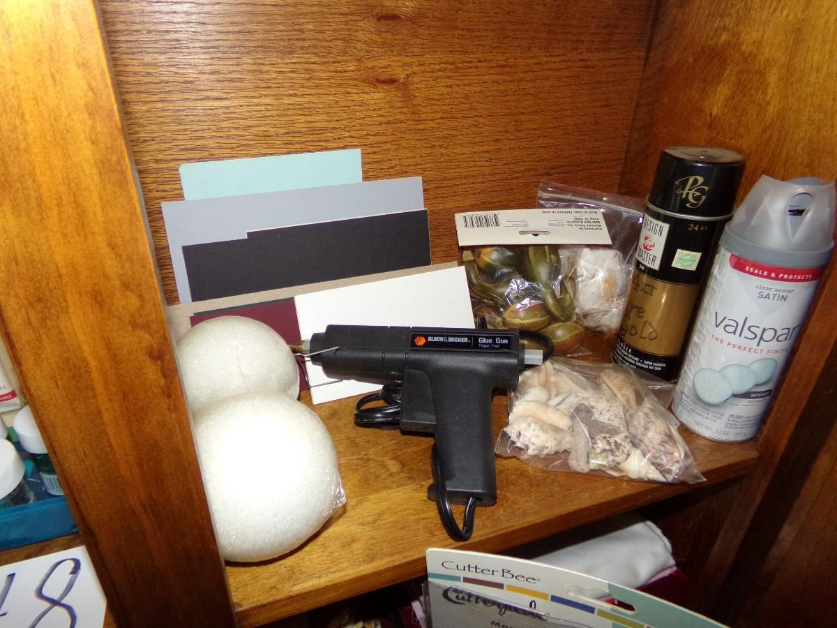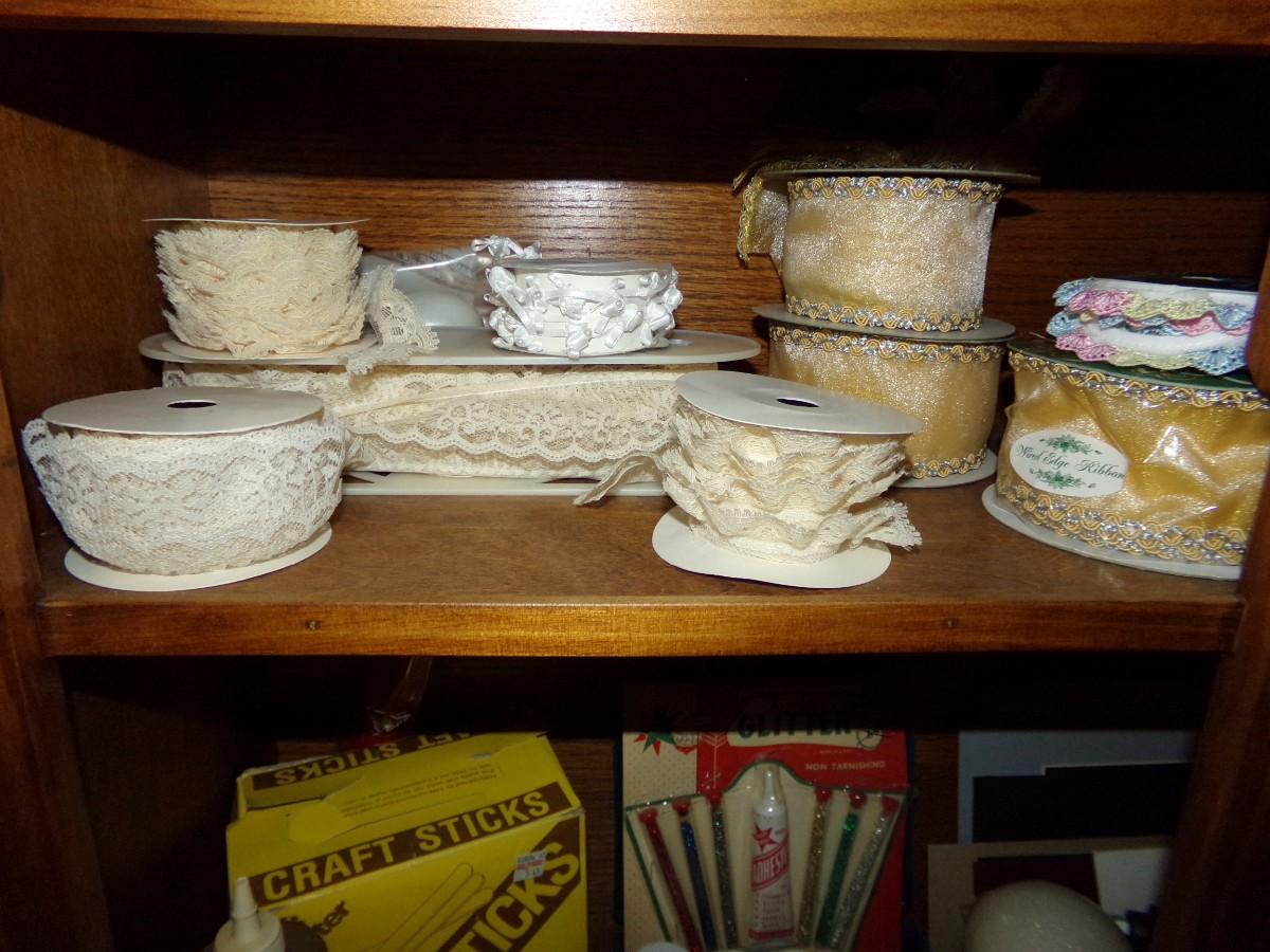 LOTS OF ITEMS TO SHOW YOUR ARTISTIC SIDE. MATERIAL, YARN, RIBBON,GLUE GUN AND MORE.