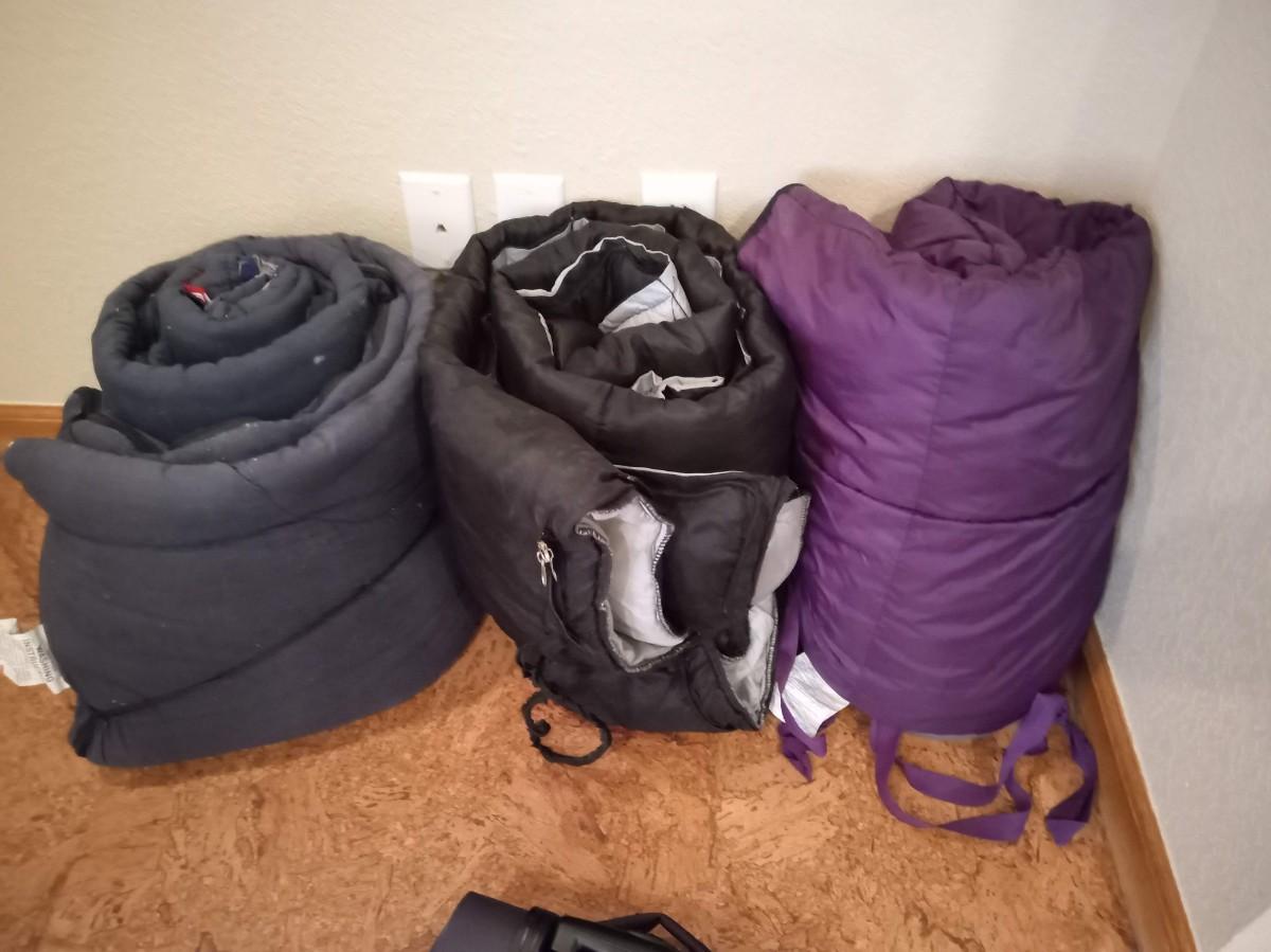 2 SLEEPING BAGS ARE NYLON THE OTHER IS CLOTH