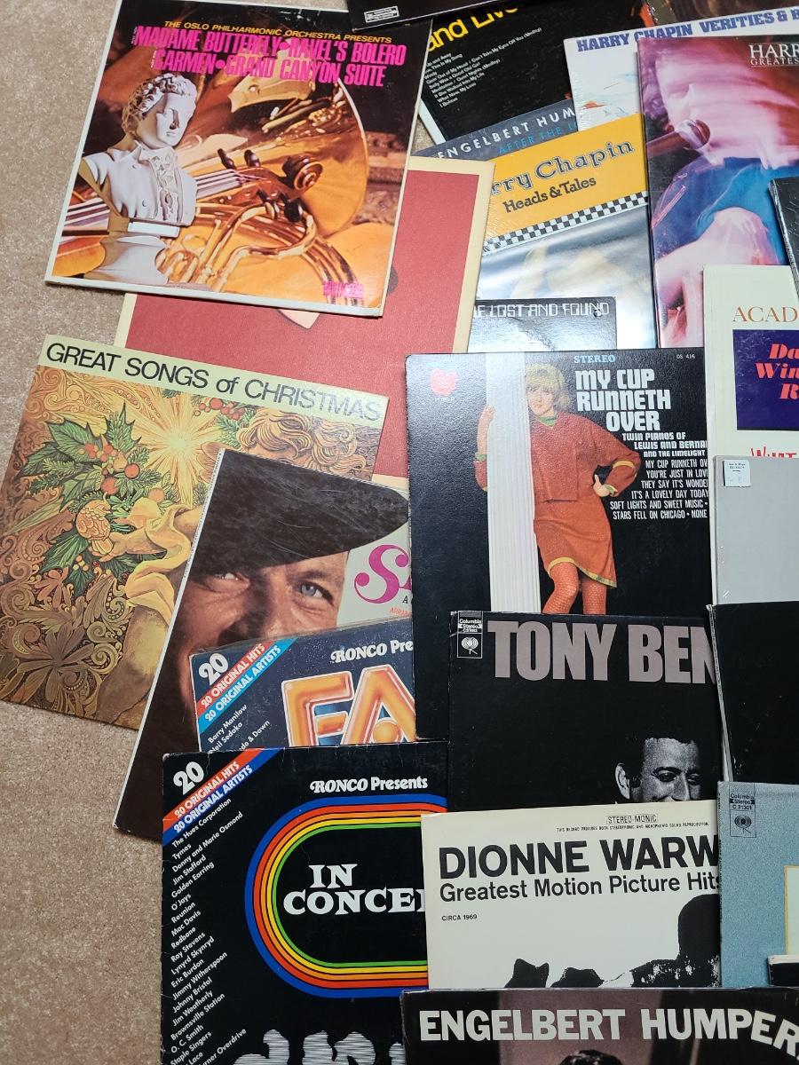 Vintage Records. All pre-owned. Please see all pictures as they are the best representation of the items. The pictures show condition, measurements if taken, and what is included in the lot. Due to the large amount that we photograph and the time frame, we are not always able to take measurements. All items unless noted, are pre-owned and have been used. If you purchased furniture, you must bring help. We do not allow one person to carry large furniture out on their own. Bring help, tools and a truck for the safety of our client’s homes, and your personal safety. Company policy. Thank you.