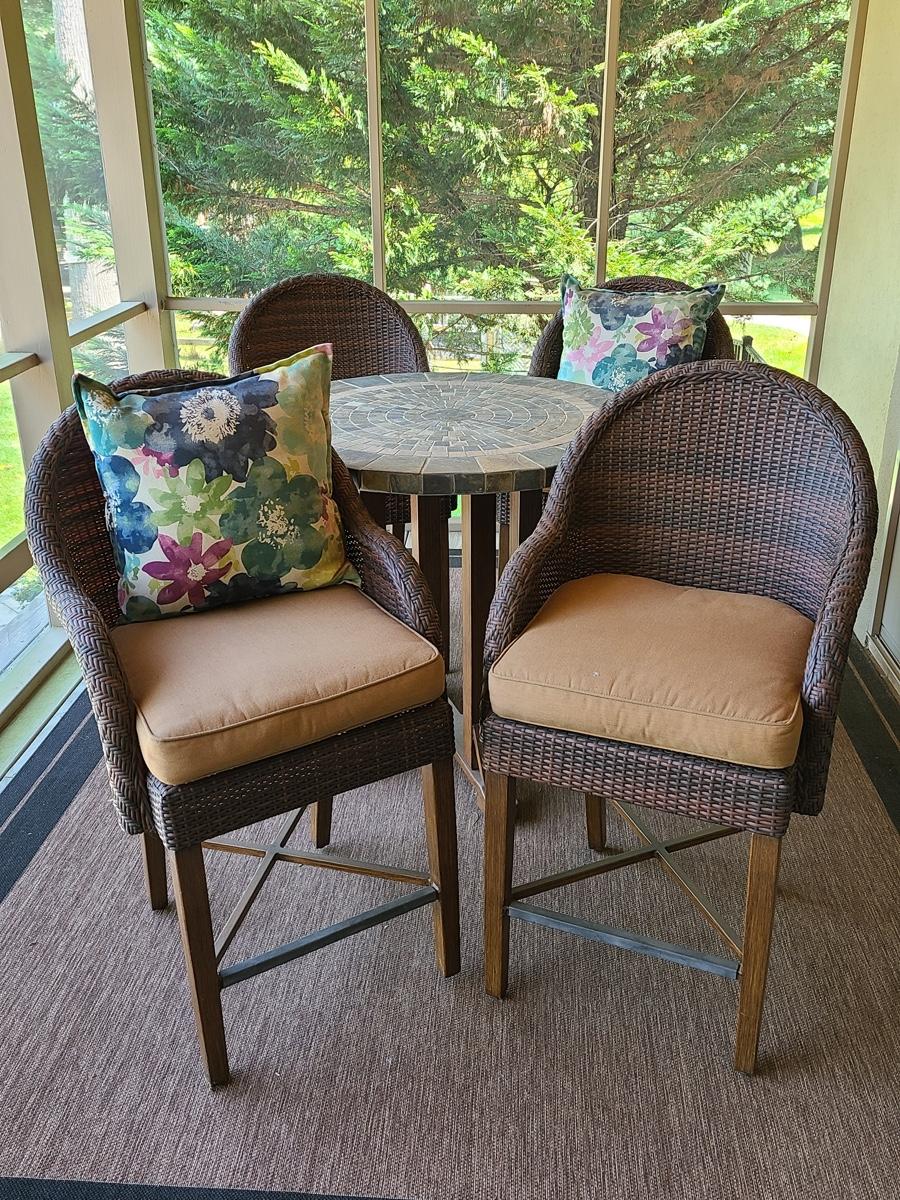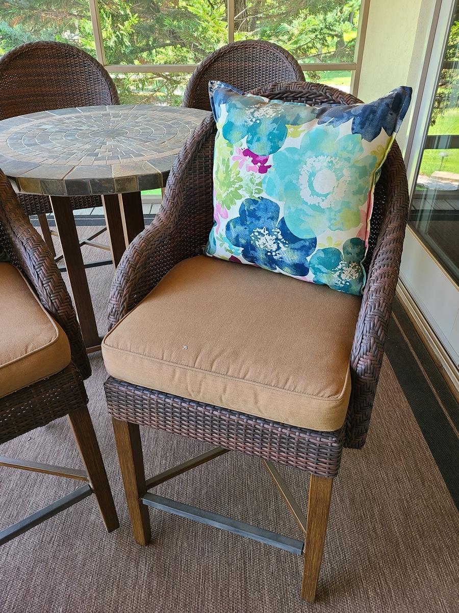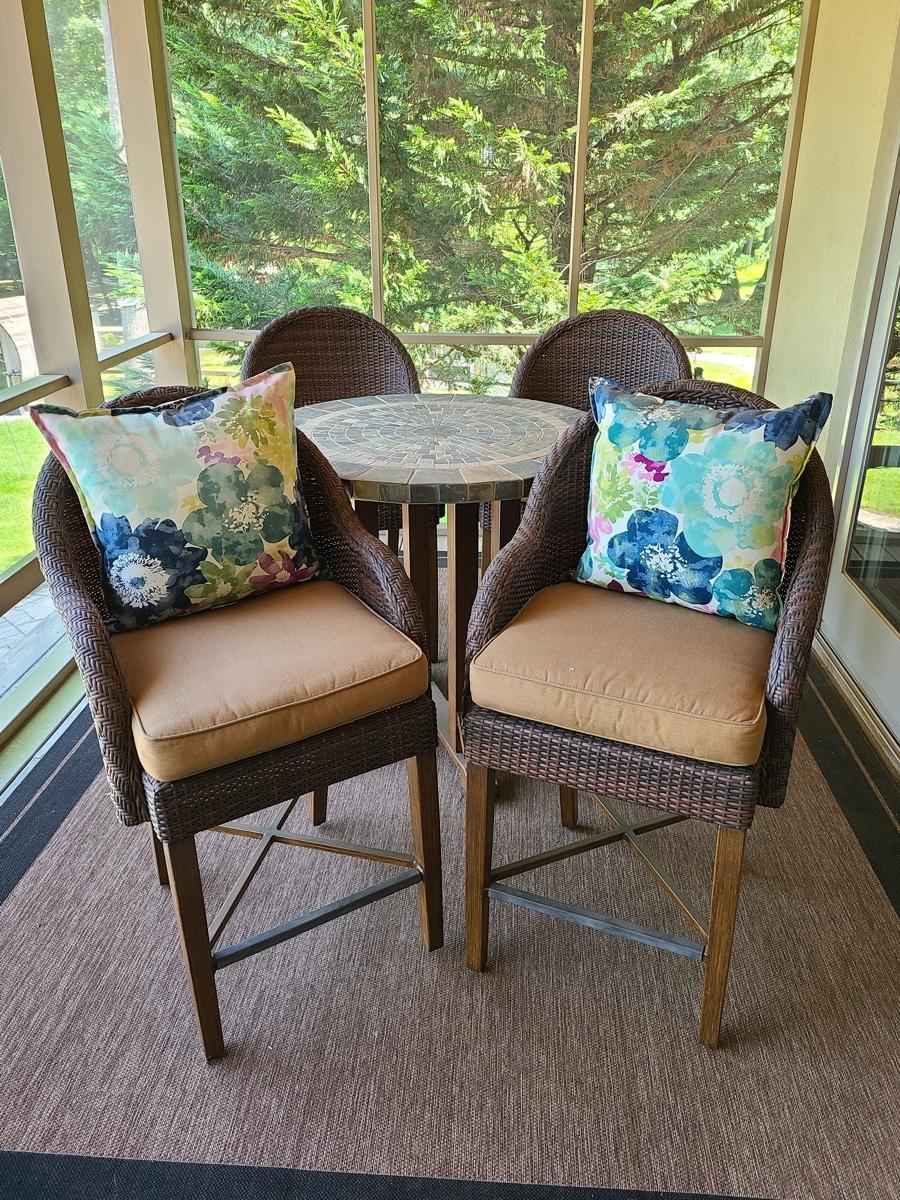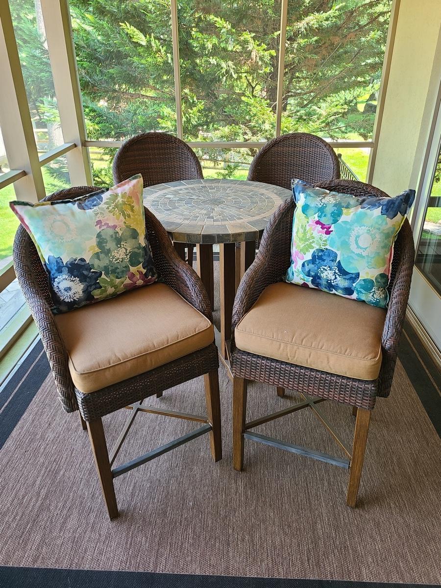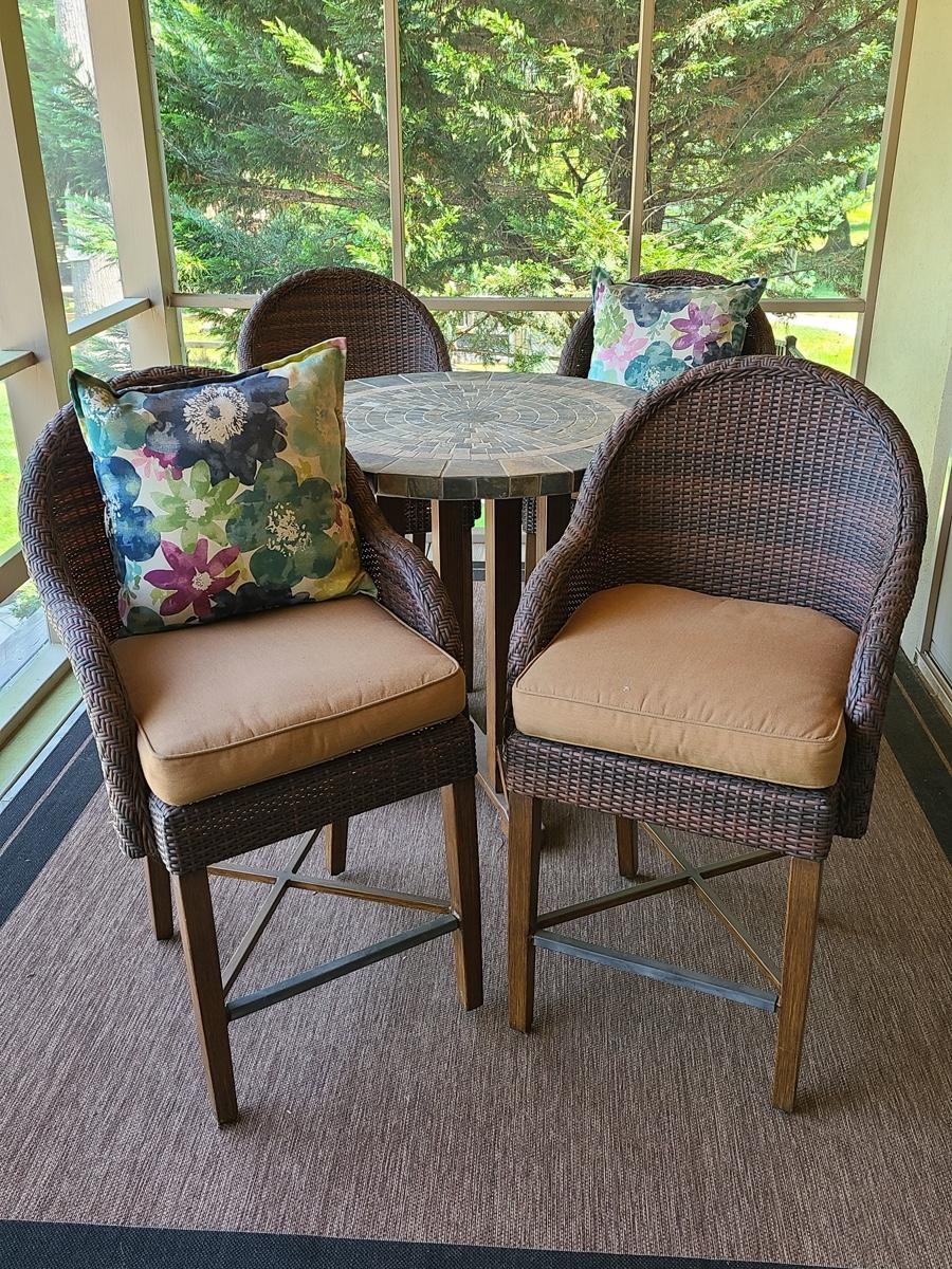 Lot 349: Five Piece Counter Height Patio Set with Sunbrella Cushions