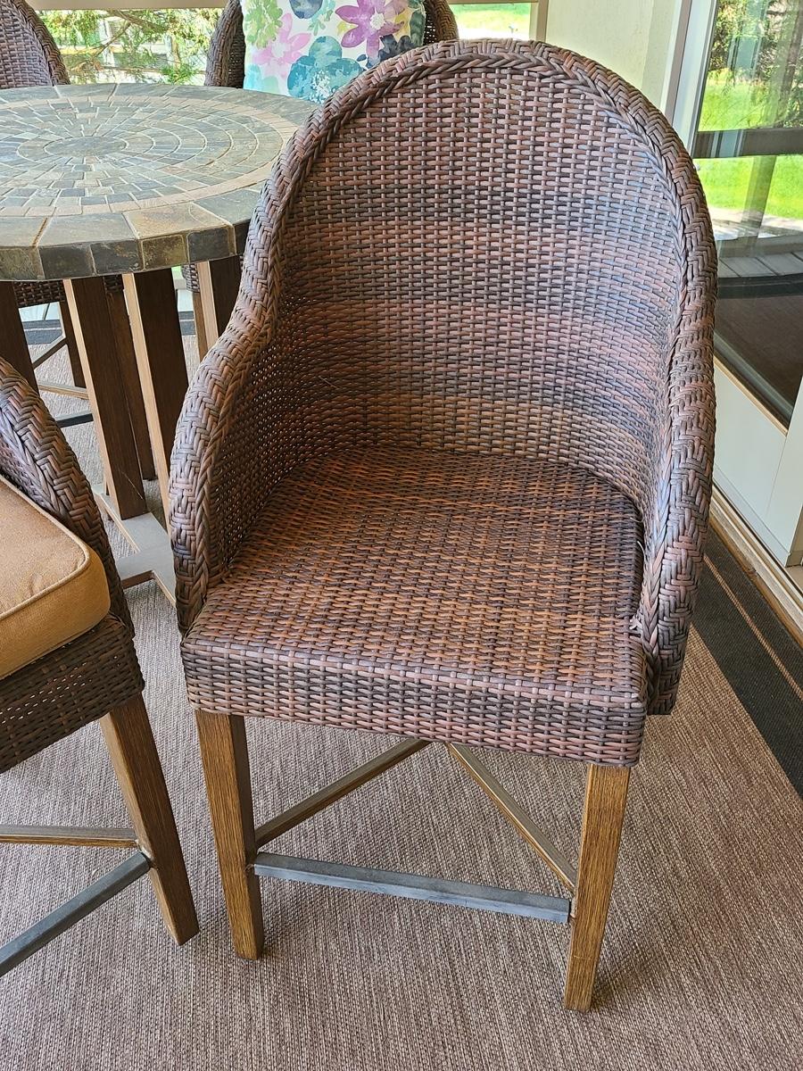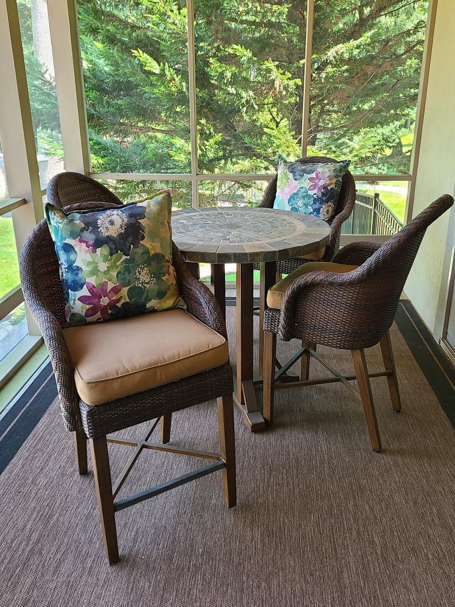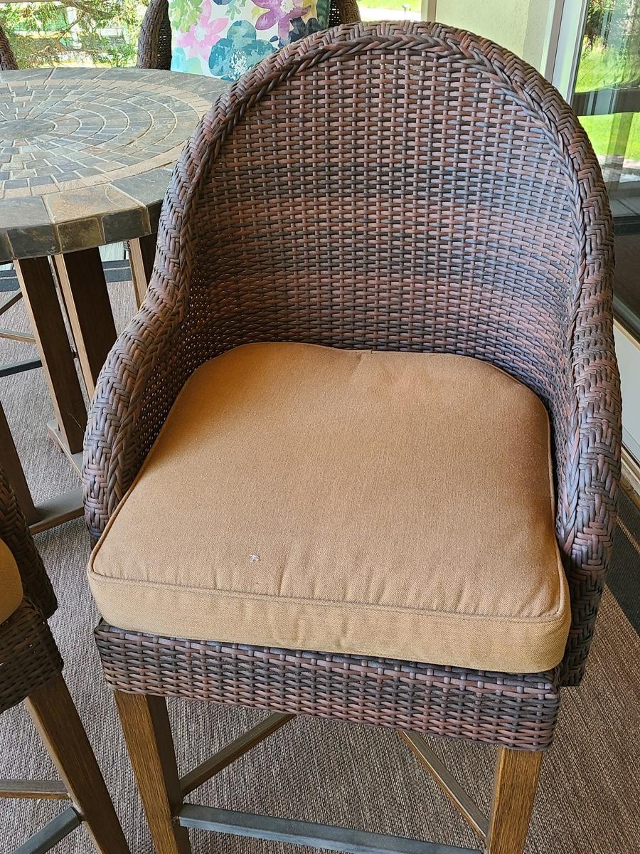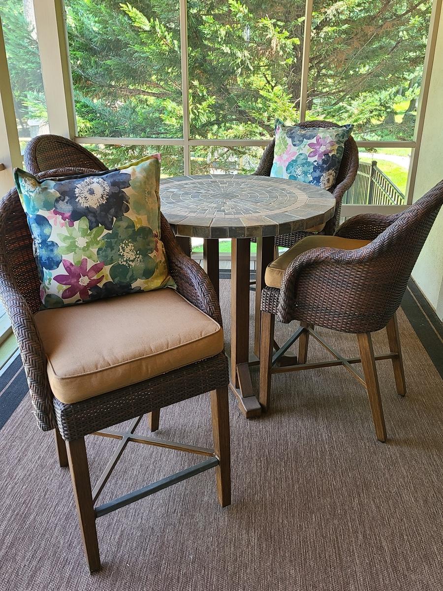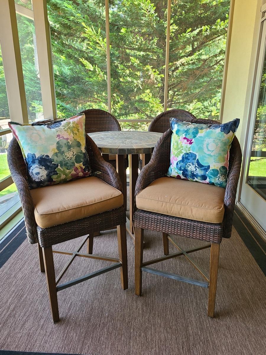 Lot 349: Five Piece Counter Height Patio Set with Sunbrella Cushions