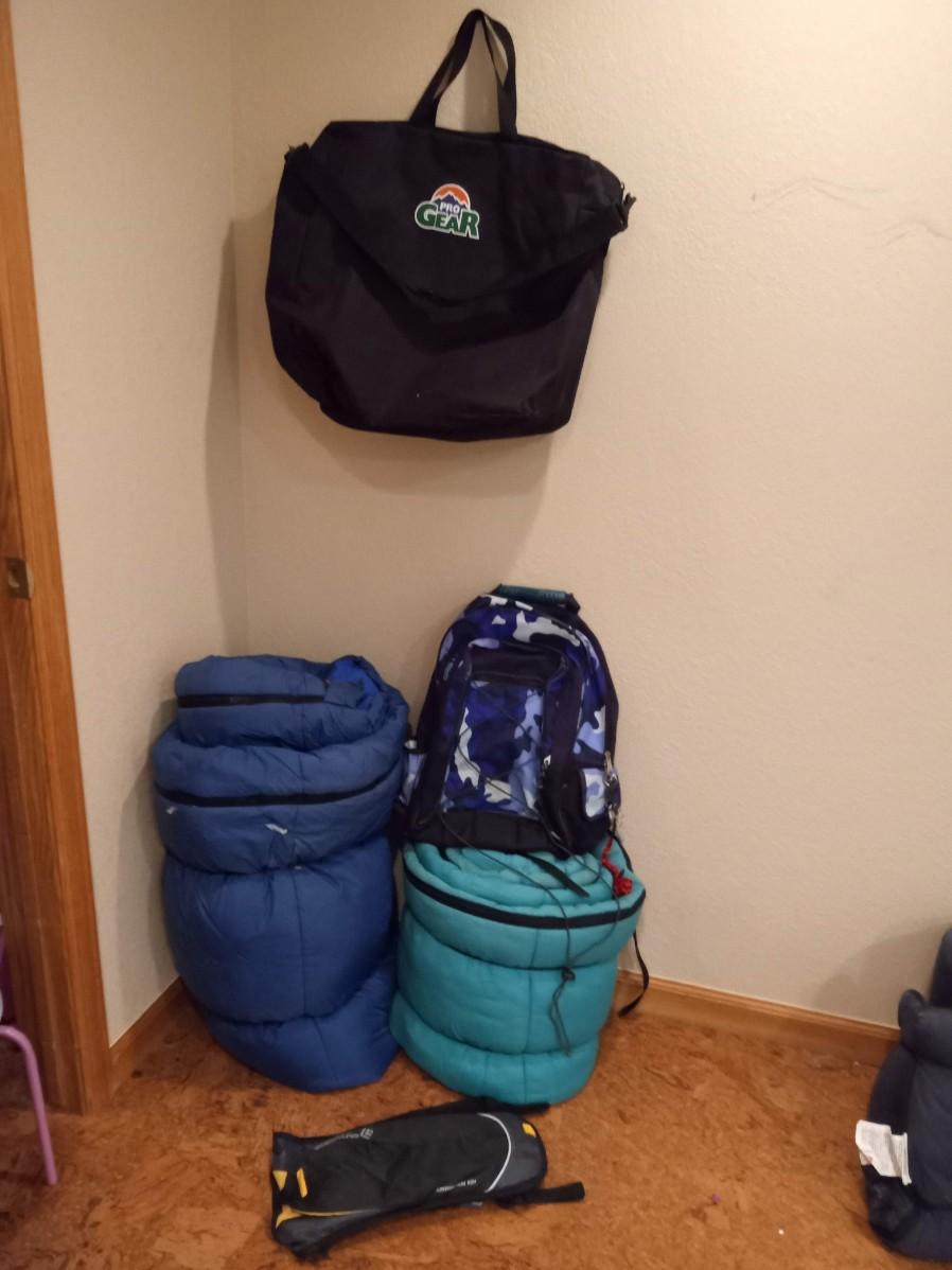 LOT 349  H2O AND OTHER BACKPACKS, 2 SLEEPING BAGS AND A GEAR PRO BAG  (HD)