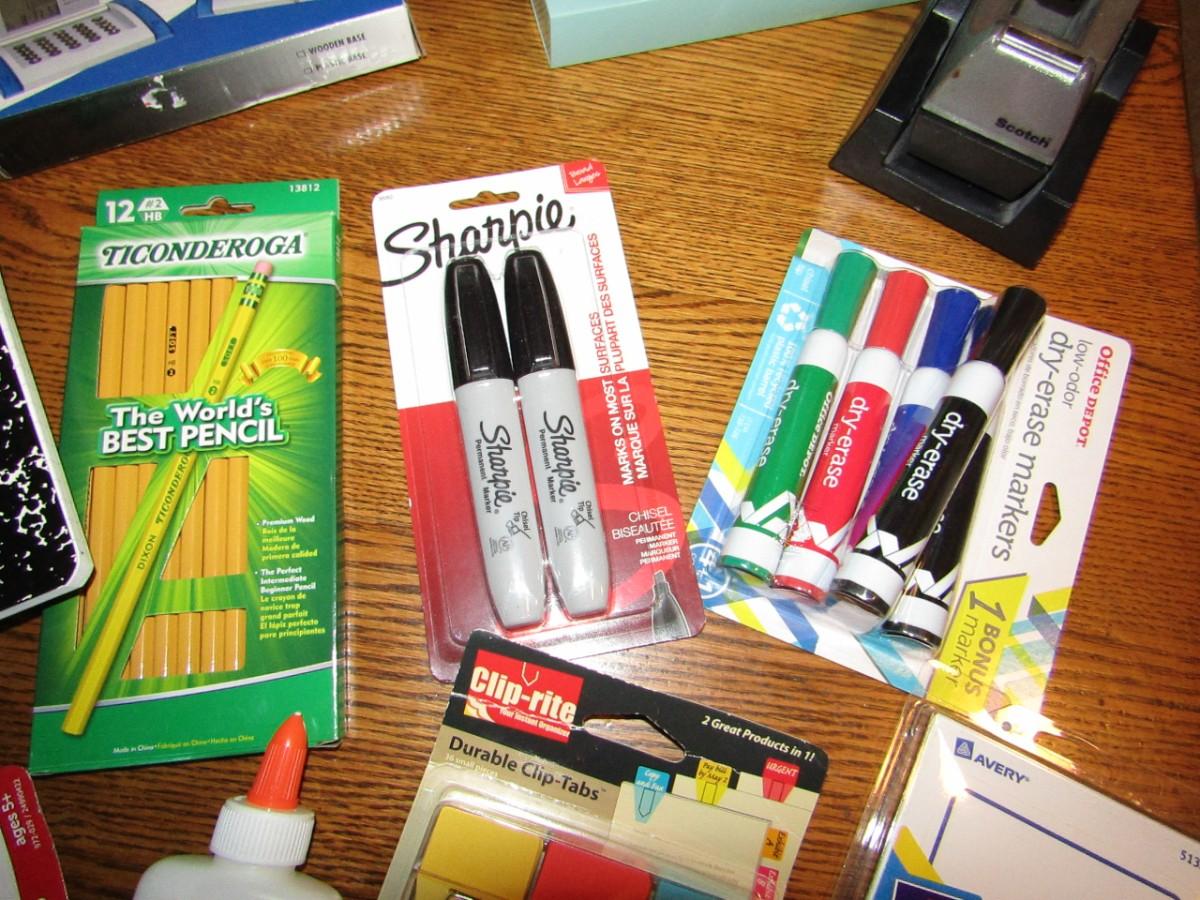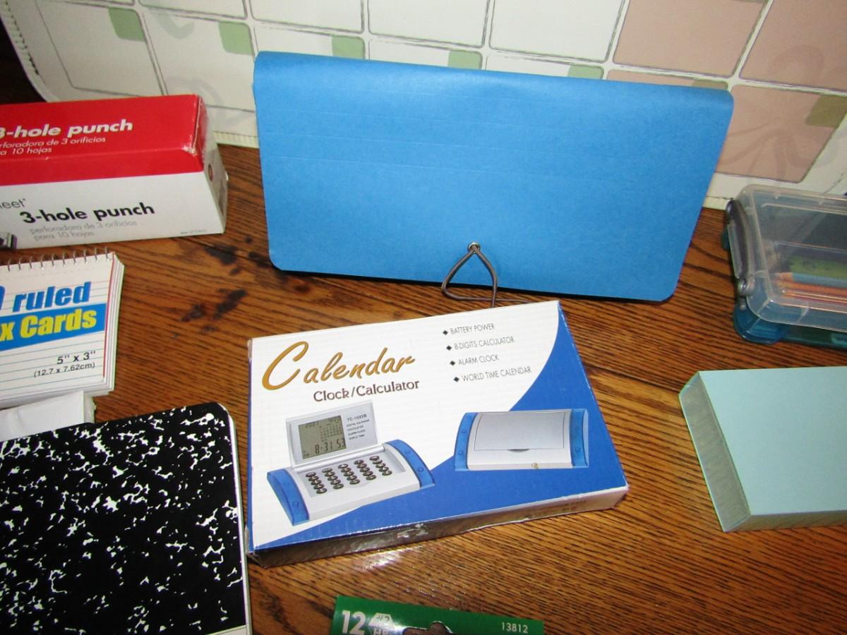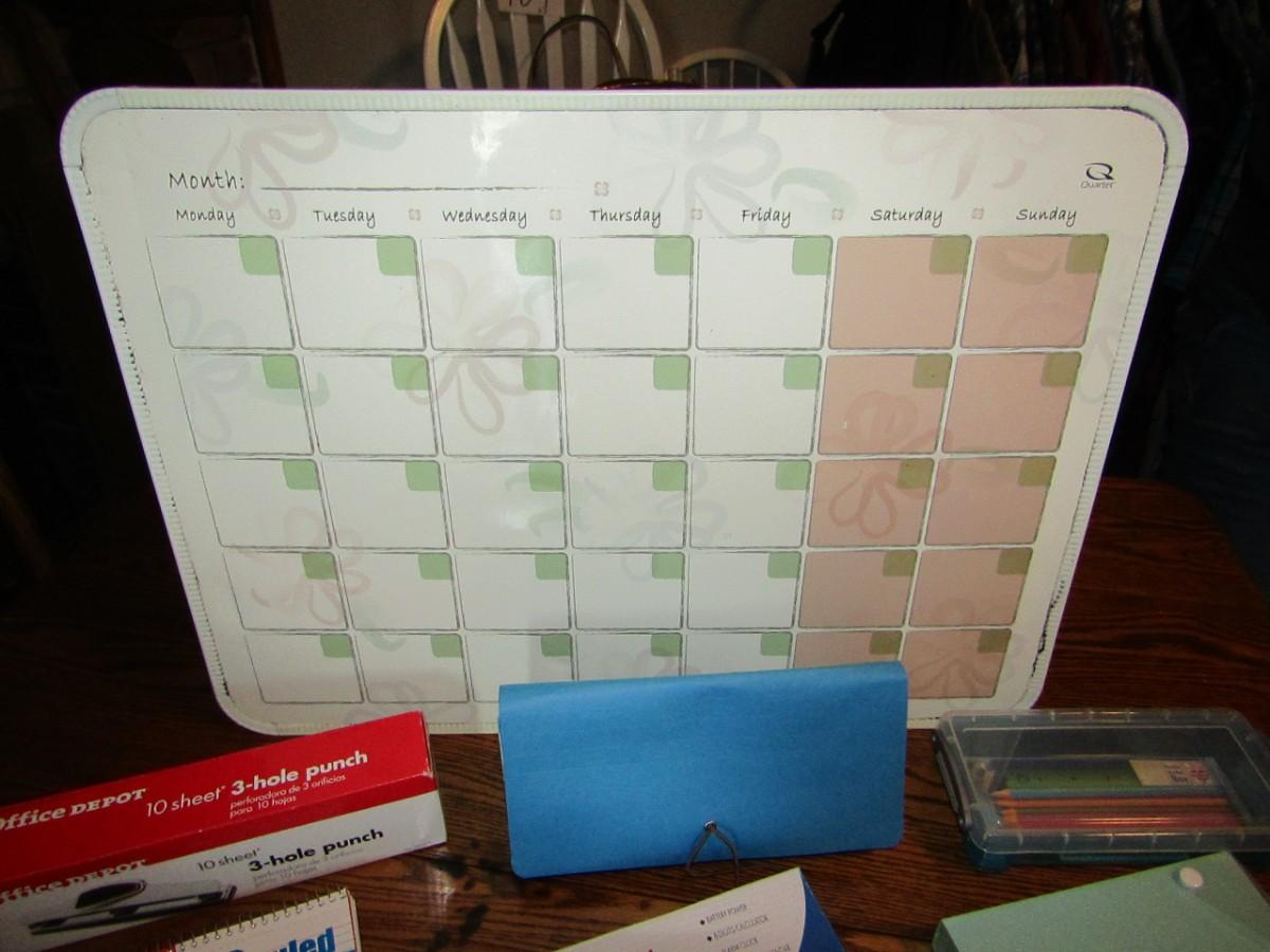 DRY ERASE CALENDAR WITH MARKERS, 3 HOLE PUNCH, TAPE DISPENSER AND MORE