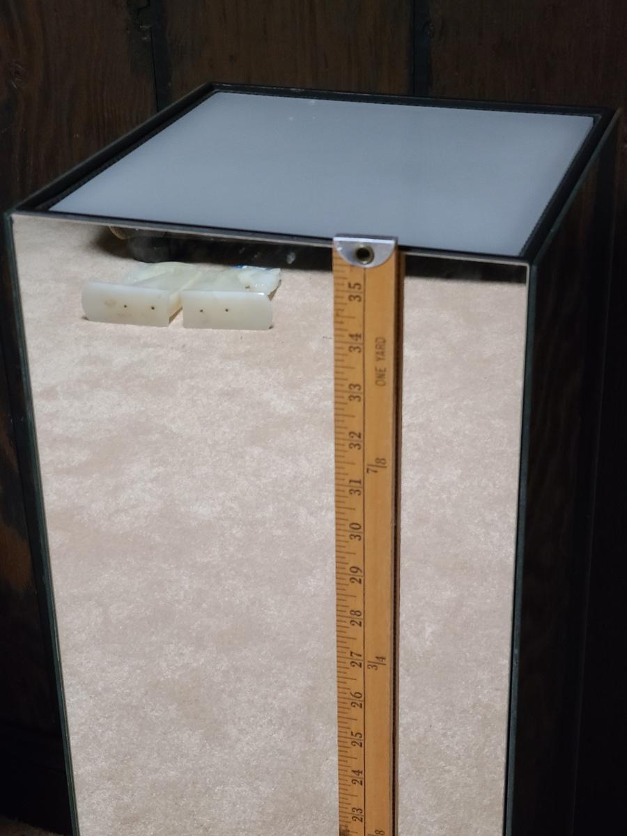 This beauty was used in a movie house to give off soft light and later was used as a display unit that highlights a piece from "glowing up". Mirrored on the exterior, and white glass top. Fun vintage piece! Please see all pictures as they are the best representation of the items. The pictures show condition, measurements if taken, and what is included in the lot. Due to the large amount that we photograph and the time frame, we are not always able to take measurements. All items unless noted, are pre-owned and have been used. If you purchased furniture, you must bring help. We do not allow one person to carry large furniture out on their own. Bring help, tools and a truck for the safety of our client’s homes, and your personal safety. Company policy. Thank you.