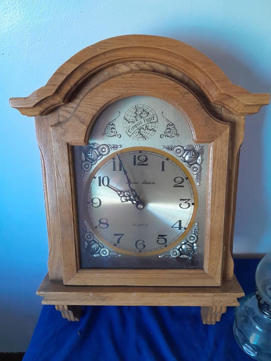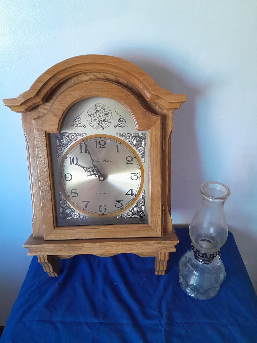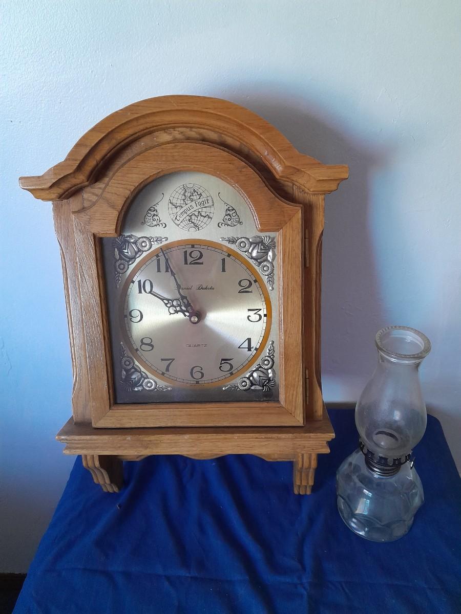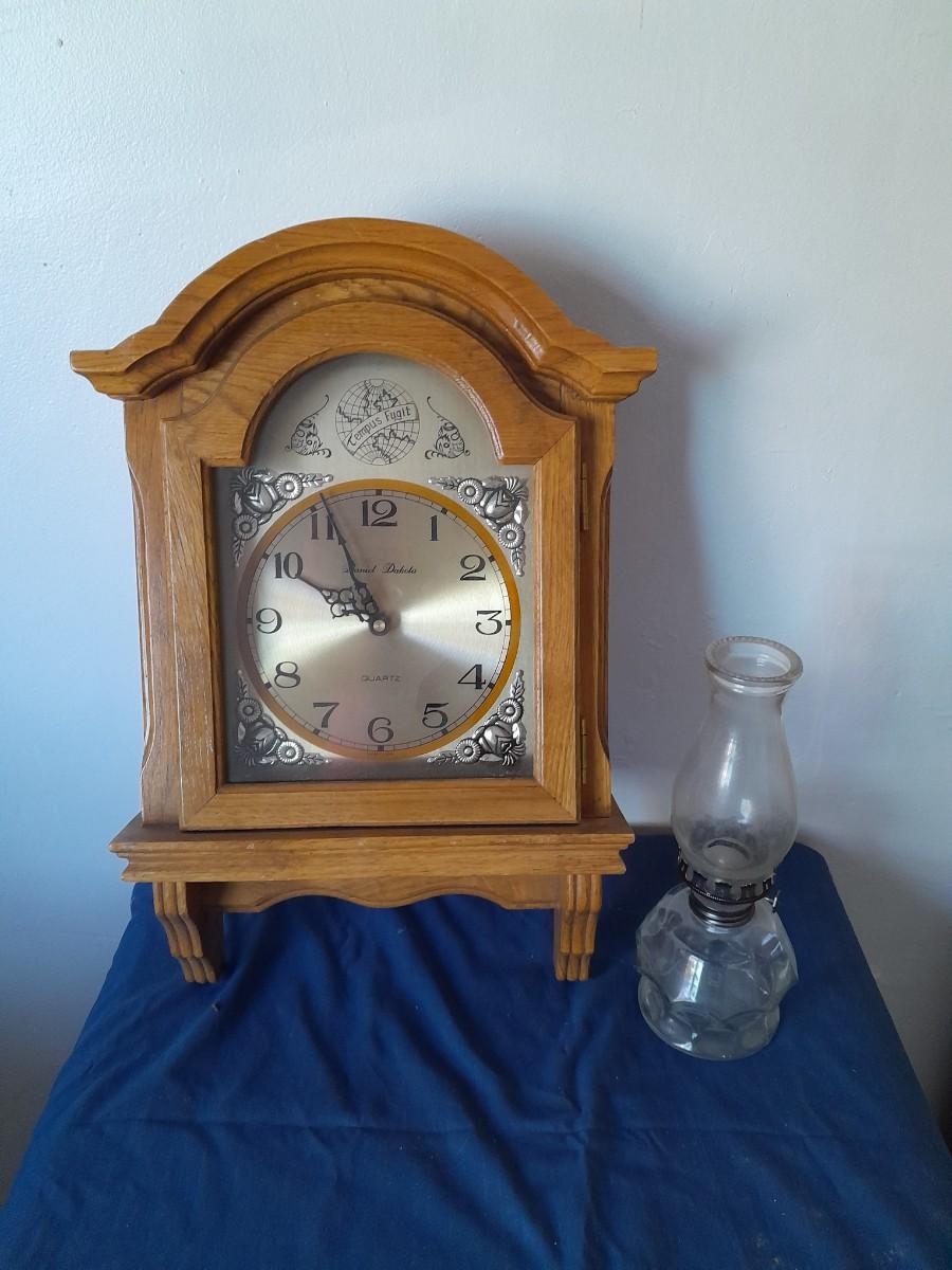 DANIEL DAKOTA WALL CLOCK 19" X 11.5" AND 10" GLASS OIL LAMP