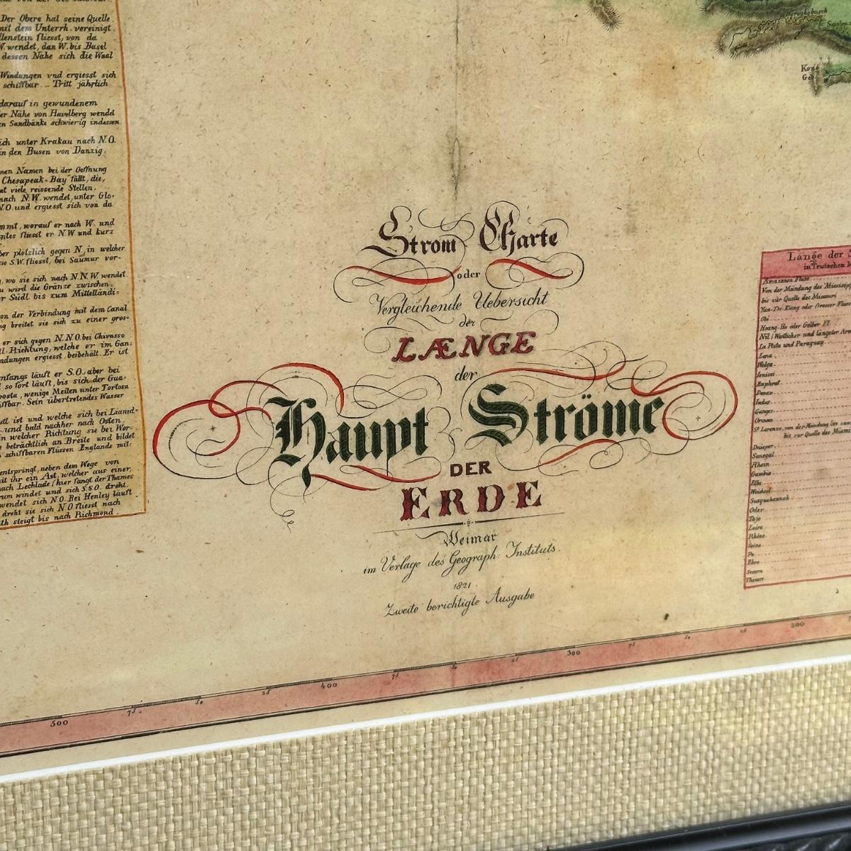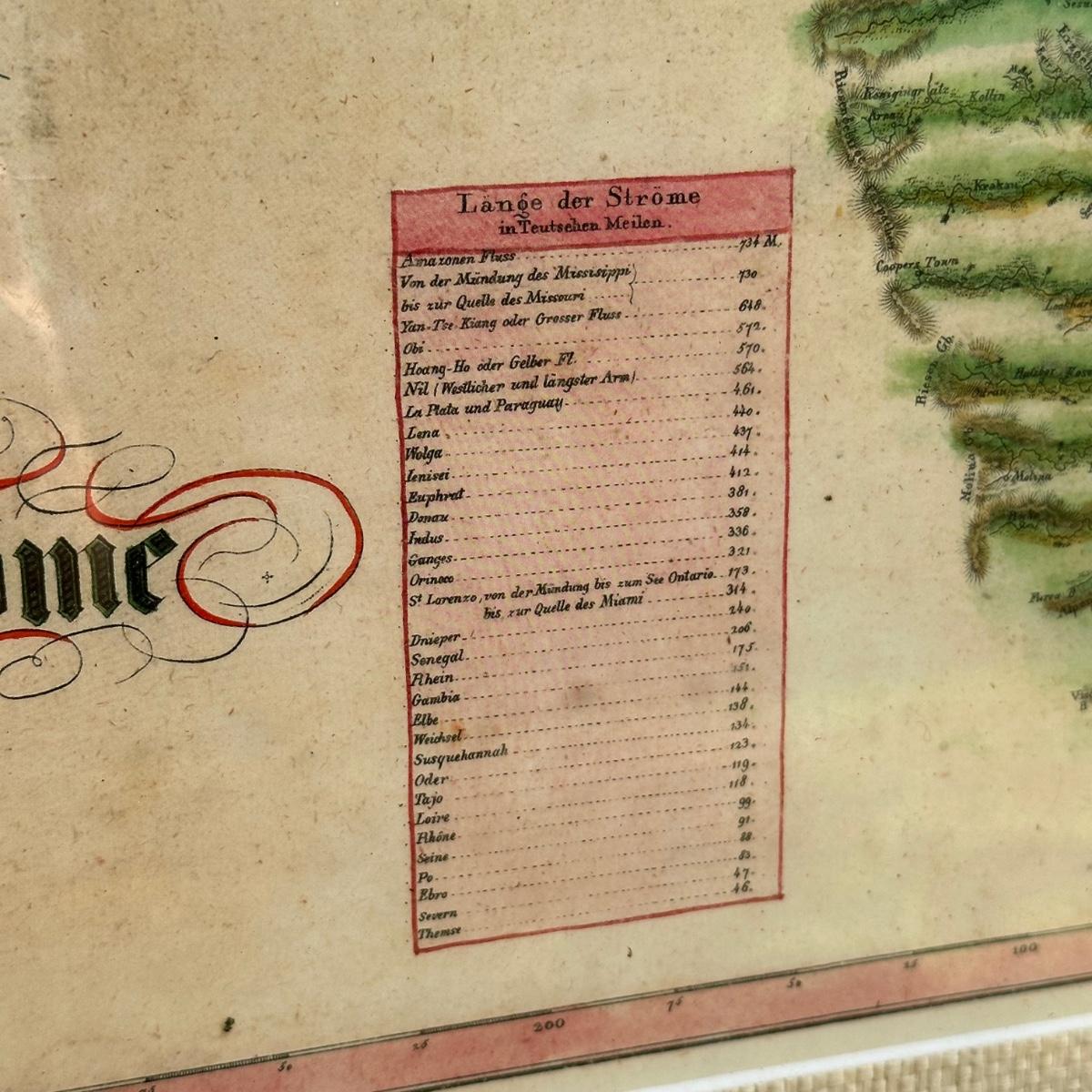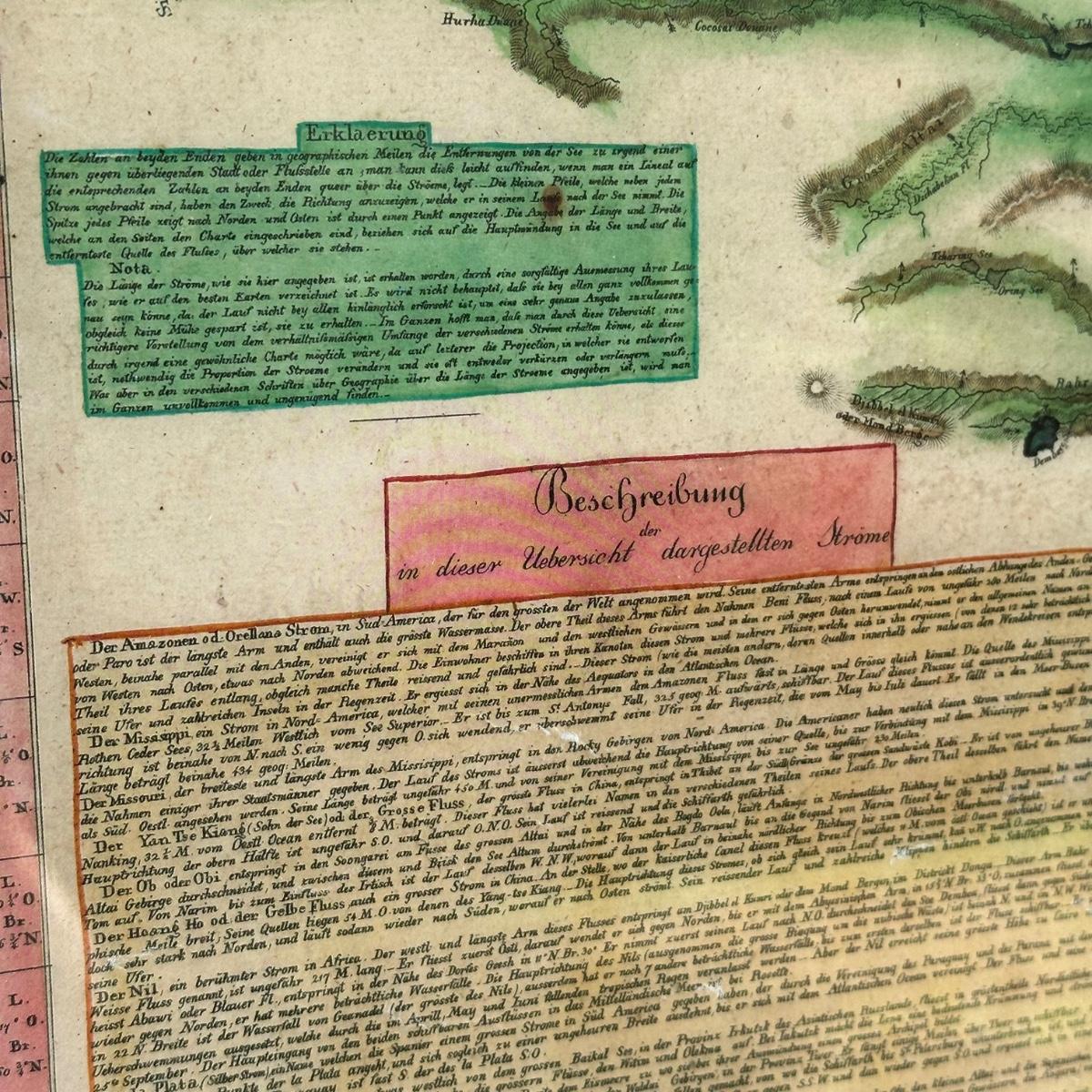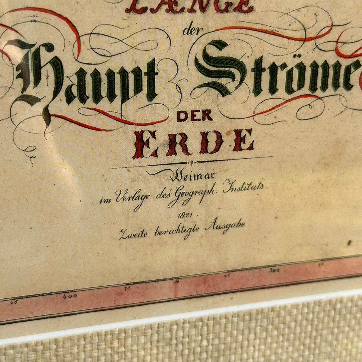 LOT 34G: Antique Colored german etching from 1821 Carl Ferdinand Weiland "Chart or comparative overview of length of main streams"