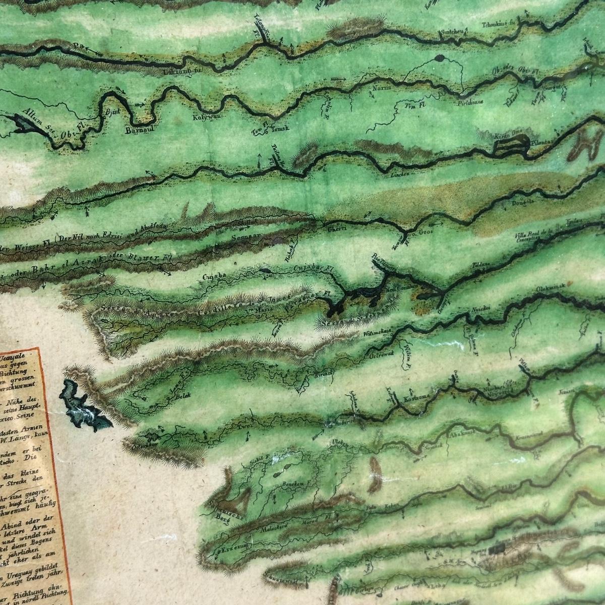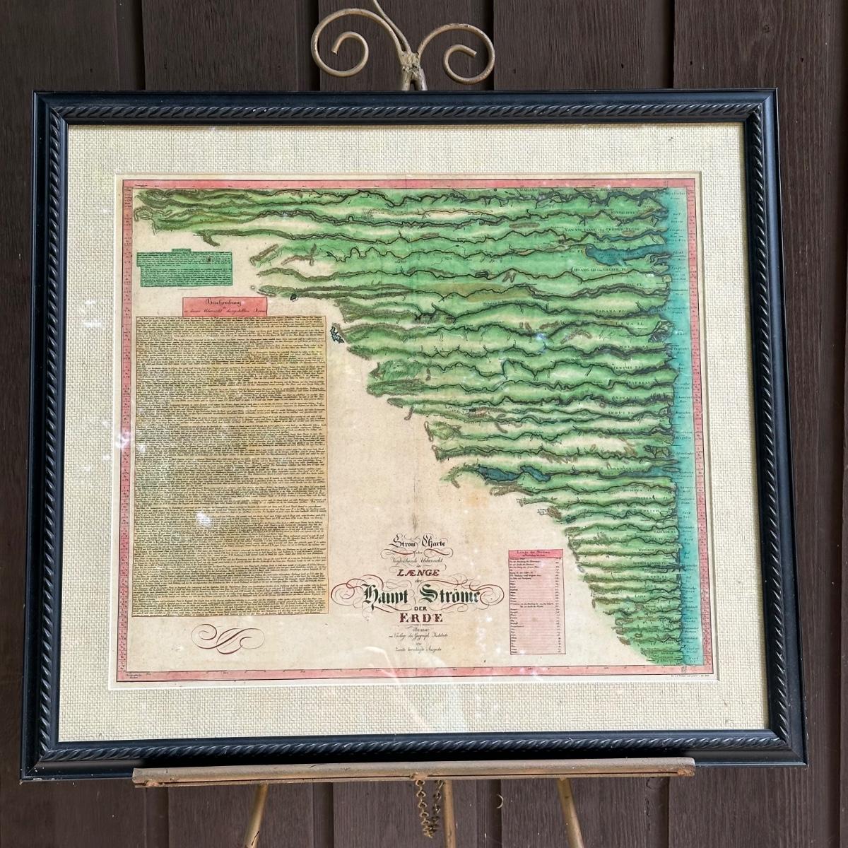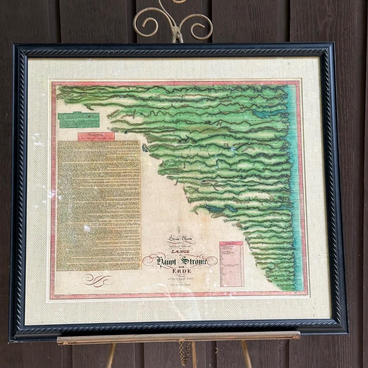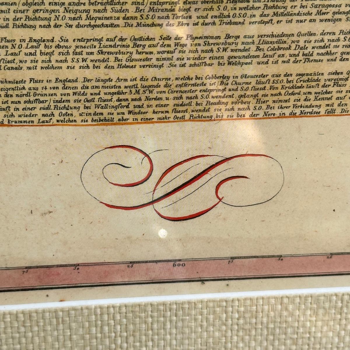 LOT 34G: Antique Colored german etching from 1821 Carl Ferdinand Weiland "Chart or comparative overview of length of main streams"