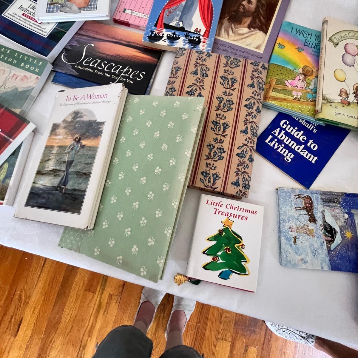 8. Sizes are approximate, you can estimate as our lot number signs are 3.5" long. Also we use an 18" & 36" measuring stick.  We try on certain things to do actual measurements. No guarantees on actual sizes, we try our best!