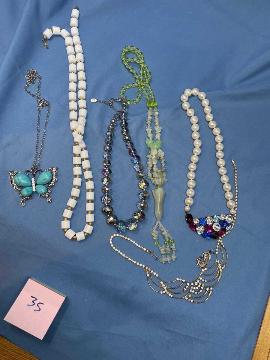 8. Sizes are approximate, you can estimate as our lot number signs are 3.5" long. Also we use an 18" & 36" measuring stick.  We try on certain things to do actual measurements. No guarantees on actual sizes, we try our best!