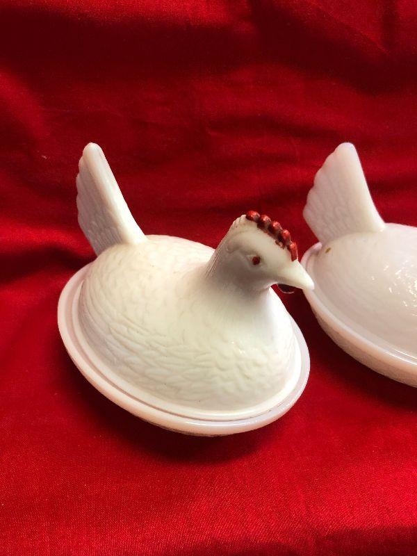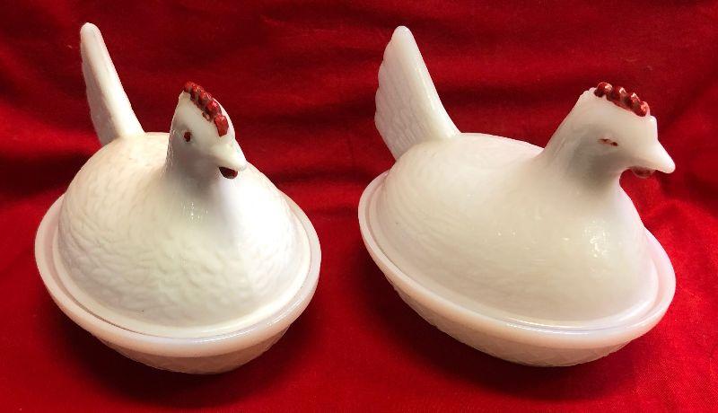 Lot 35 - 2 Hens in Basket Milk Glass Unknown maker