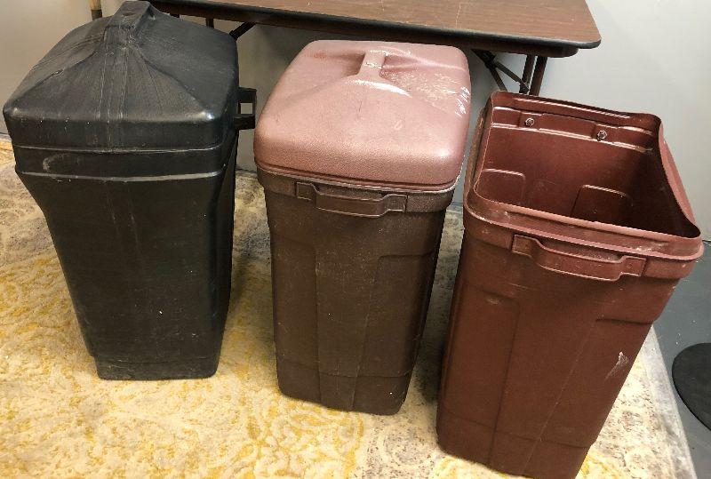 Lot # 35 (3) 30 Gallon Garbage Cans - 2 with lids