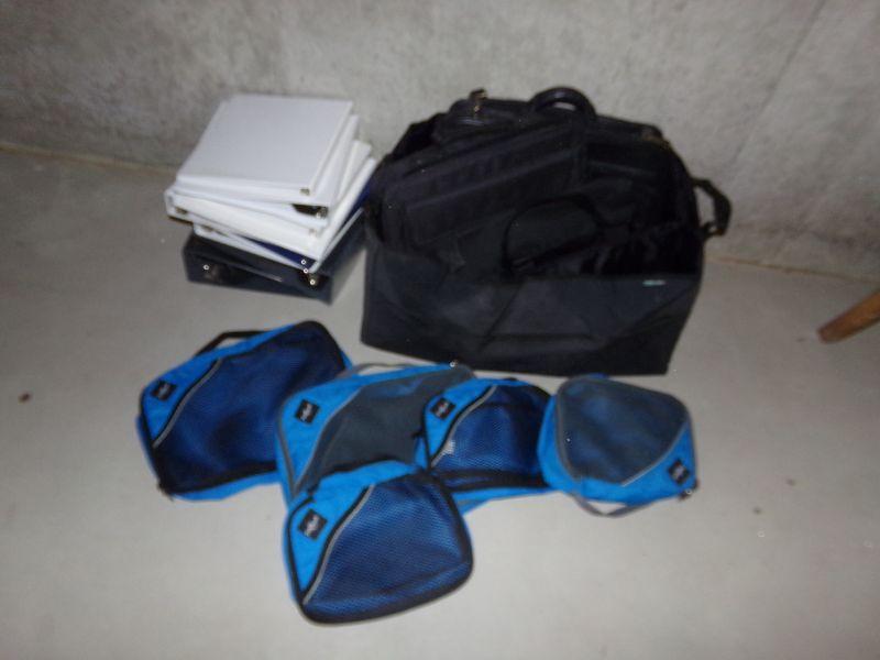 LEATHER SOFT SIDED BRIEFCASE, SEVERAL EAGLE CREEK NYLON BAGS, DUFFLE BAGS AND FOLDING, SOFT 4 SIDED BOX