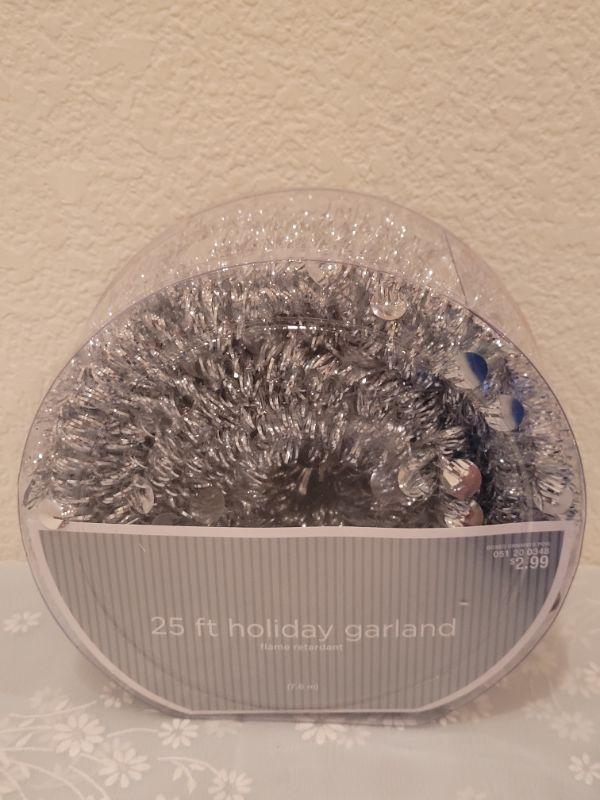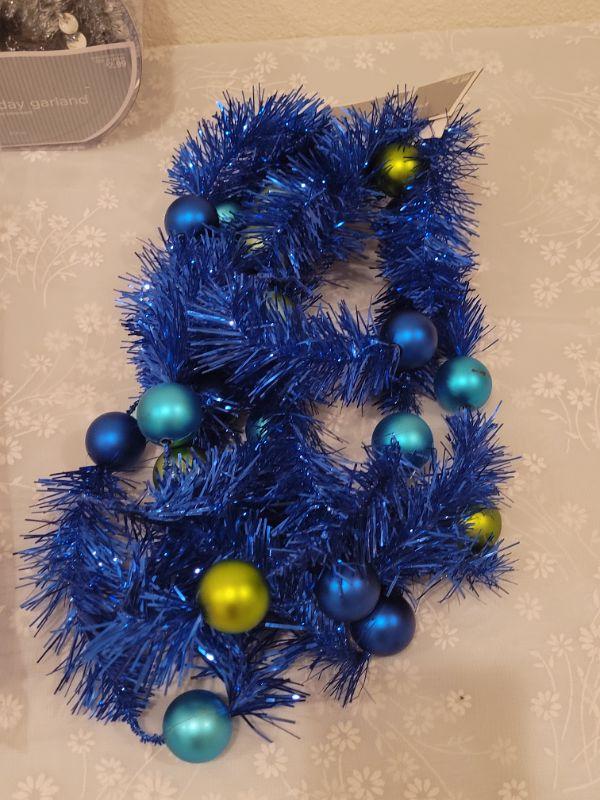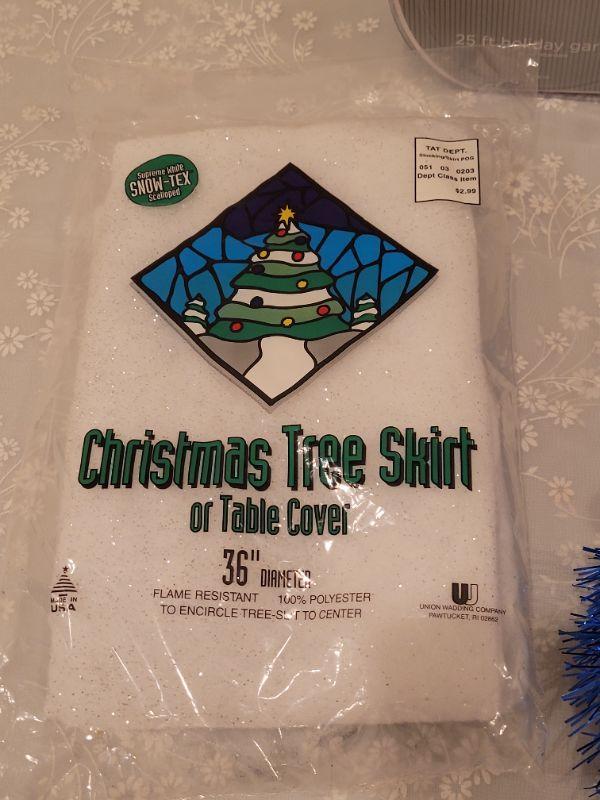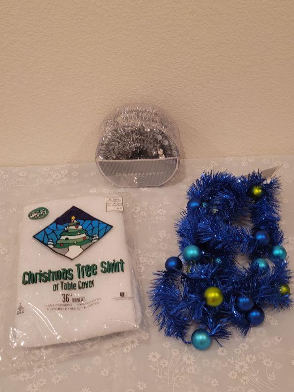 Lot 35: New Blue and Silver Garland and Snow Tex Christmas Tree Skirt