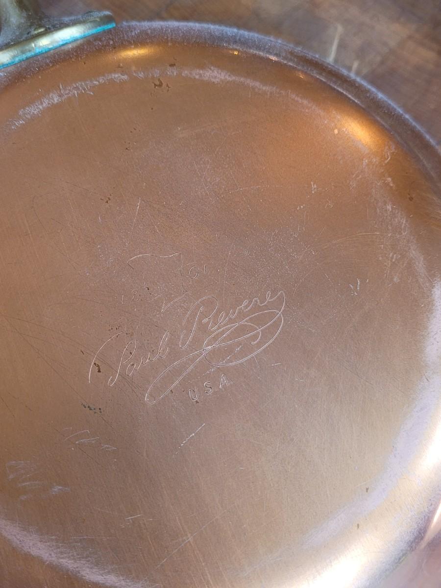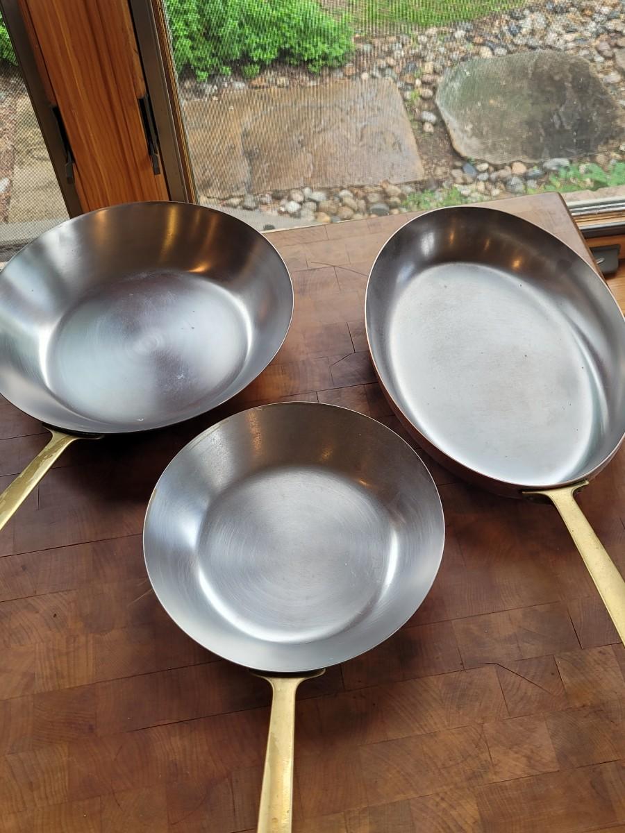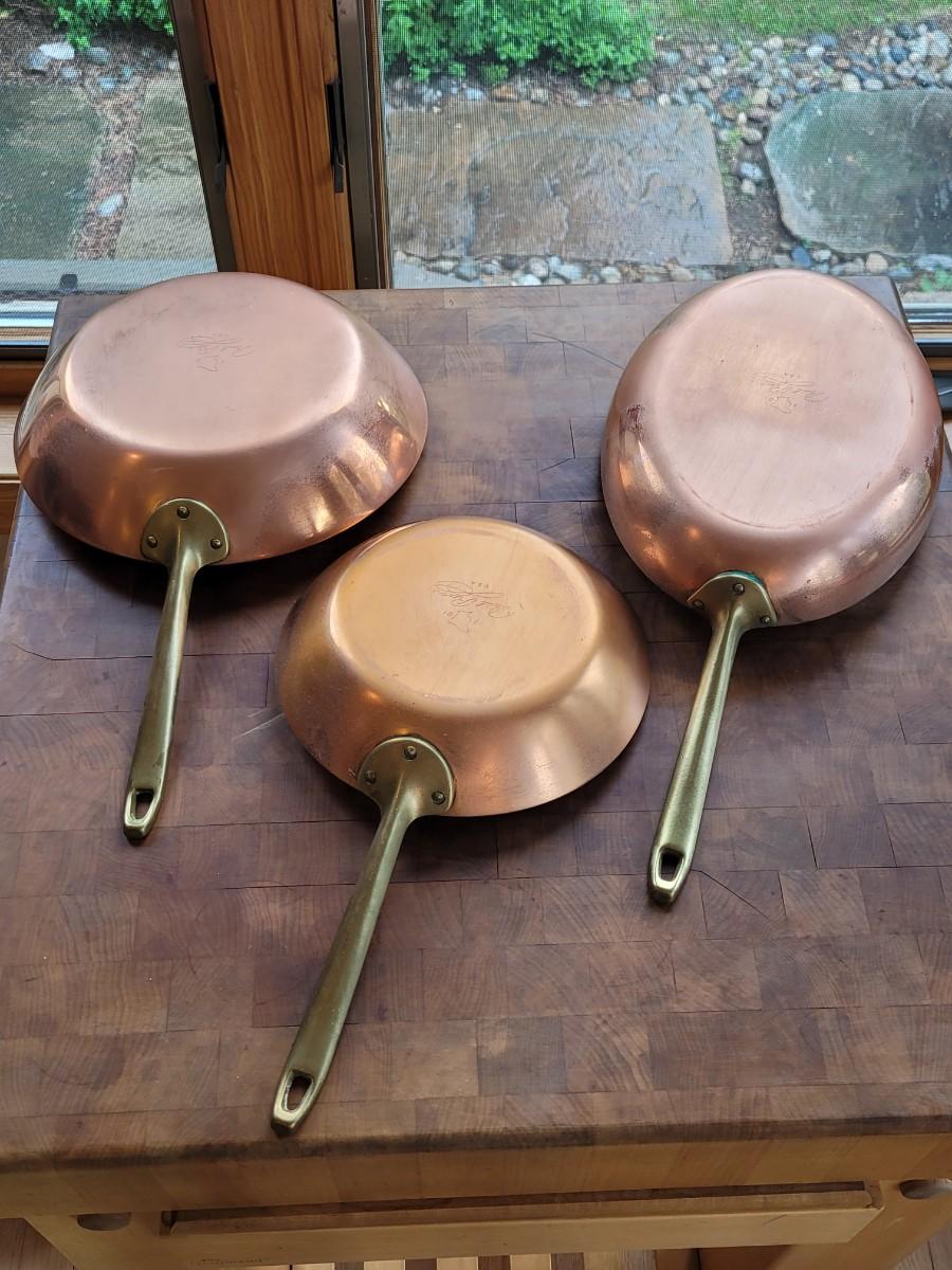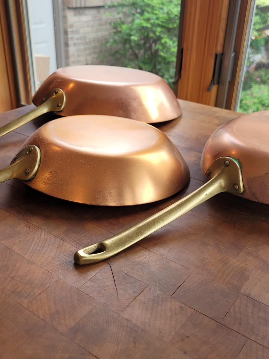 Lot 35: Paul Revere Copper Skillet Set (3) with Brass Handles