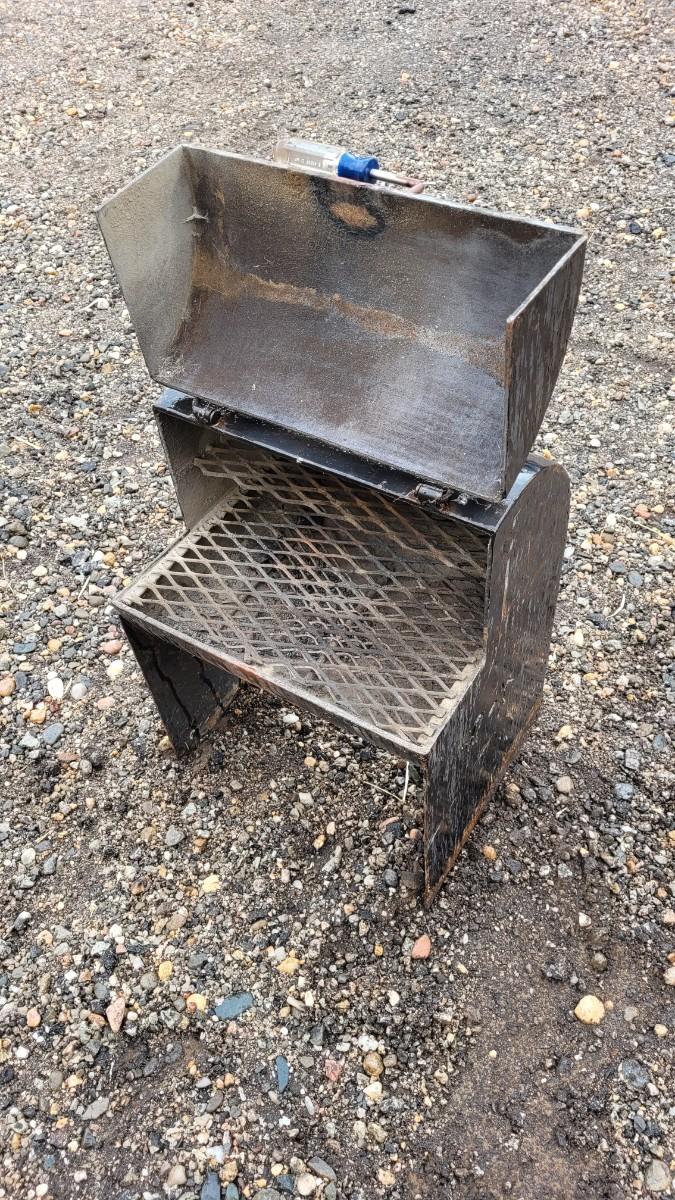 Lot 35: Vintage Farmhouse Handbuilt Welded Steel HEAVY Portable Mini Smoker Grille FOLK ART Signed