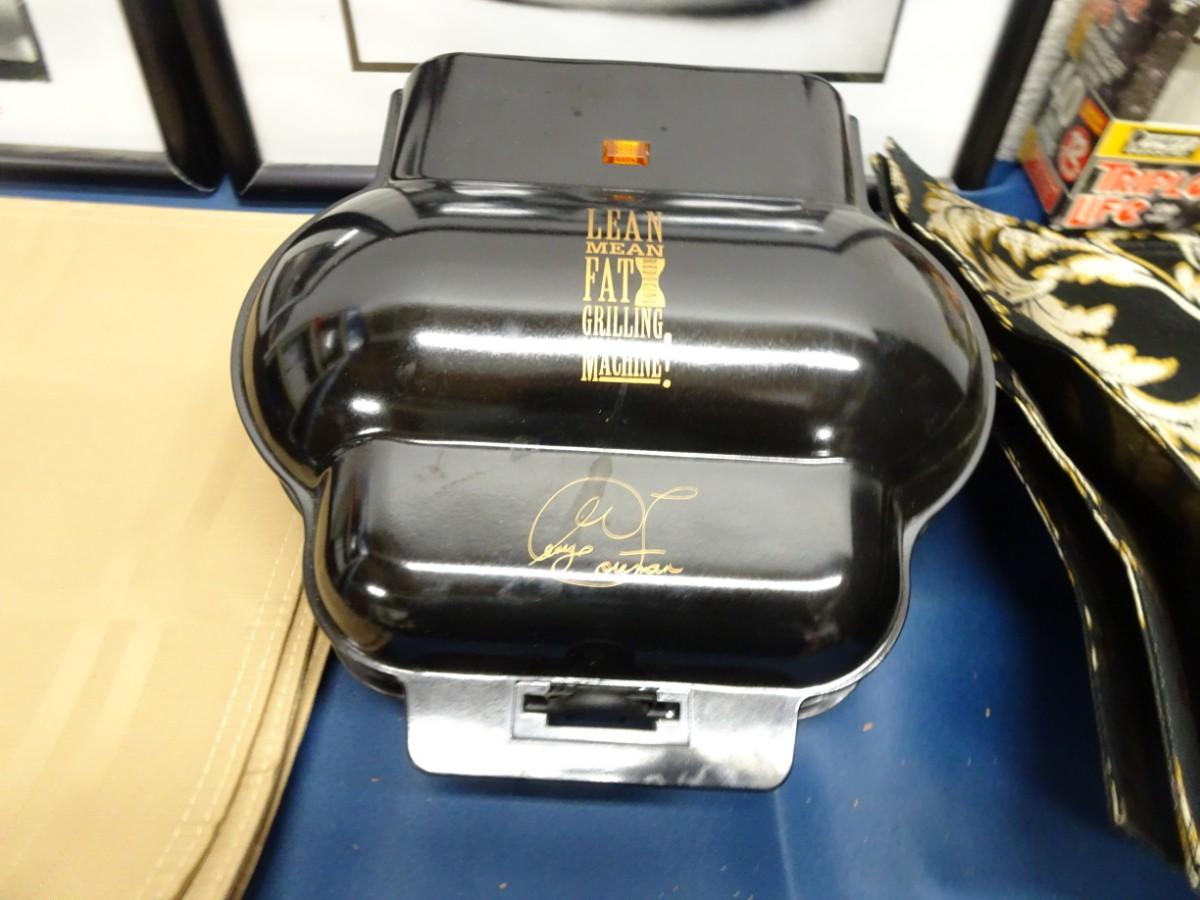 LOT 35. FRAMED PHOT0S, HOME DECOR AND FOREMAN GRILL