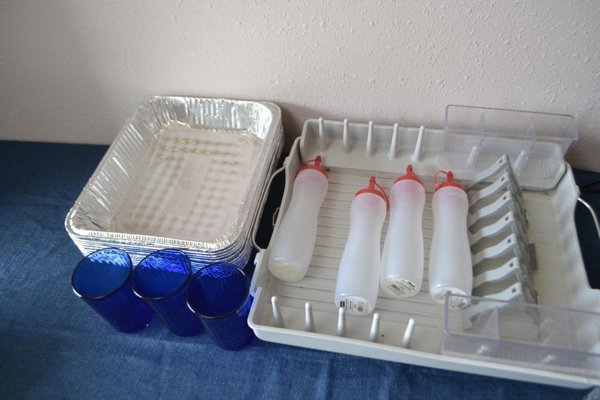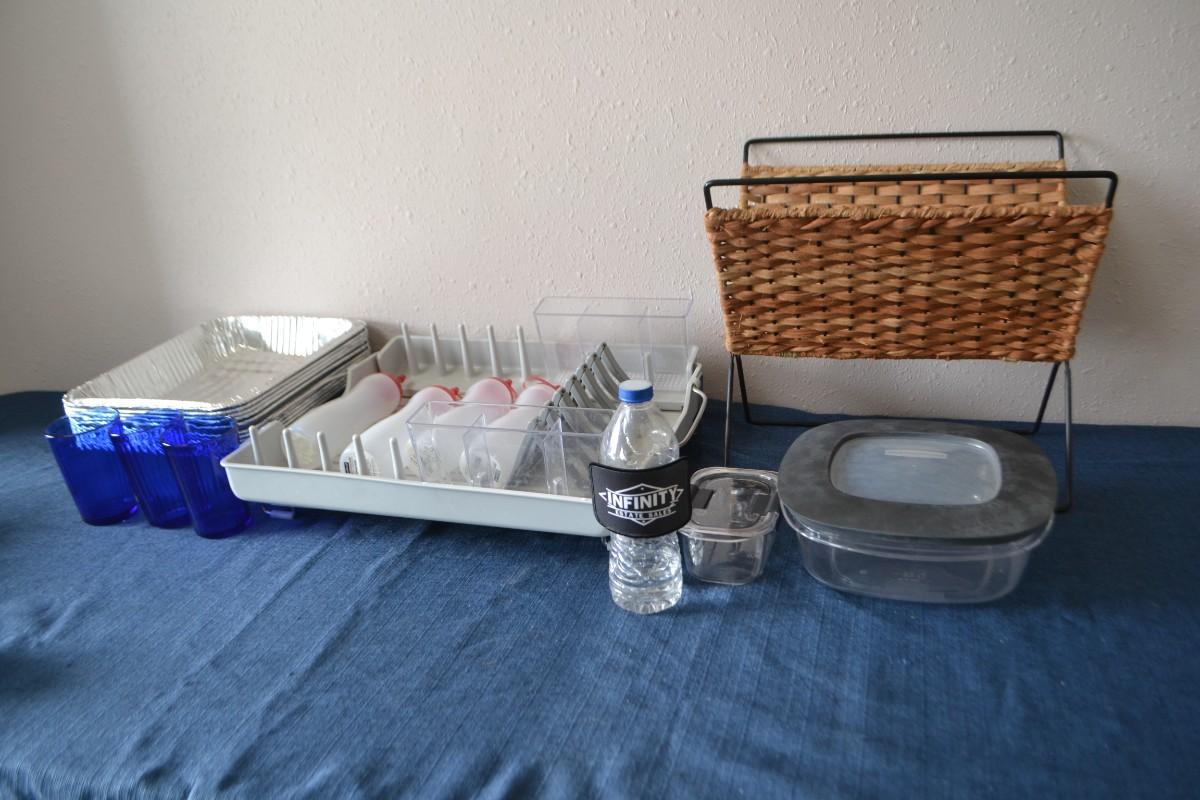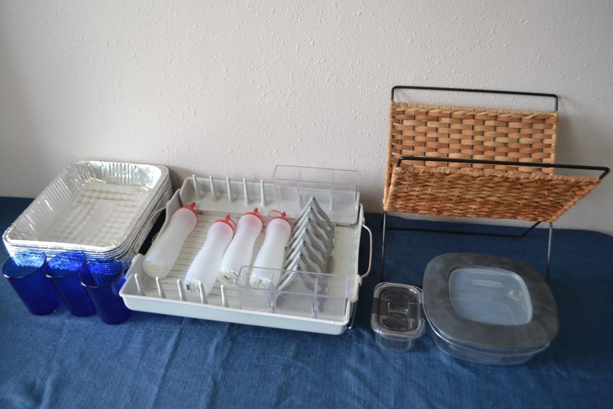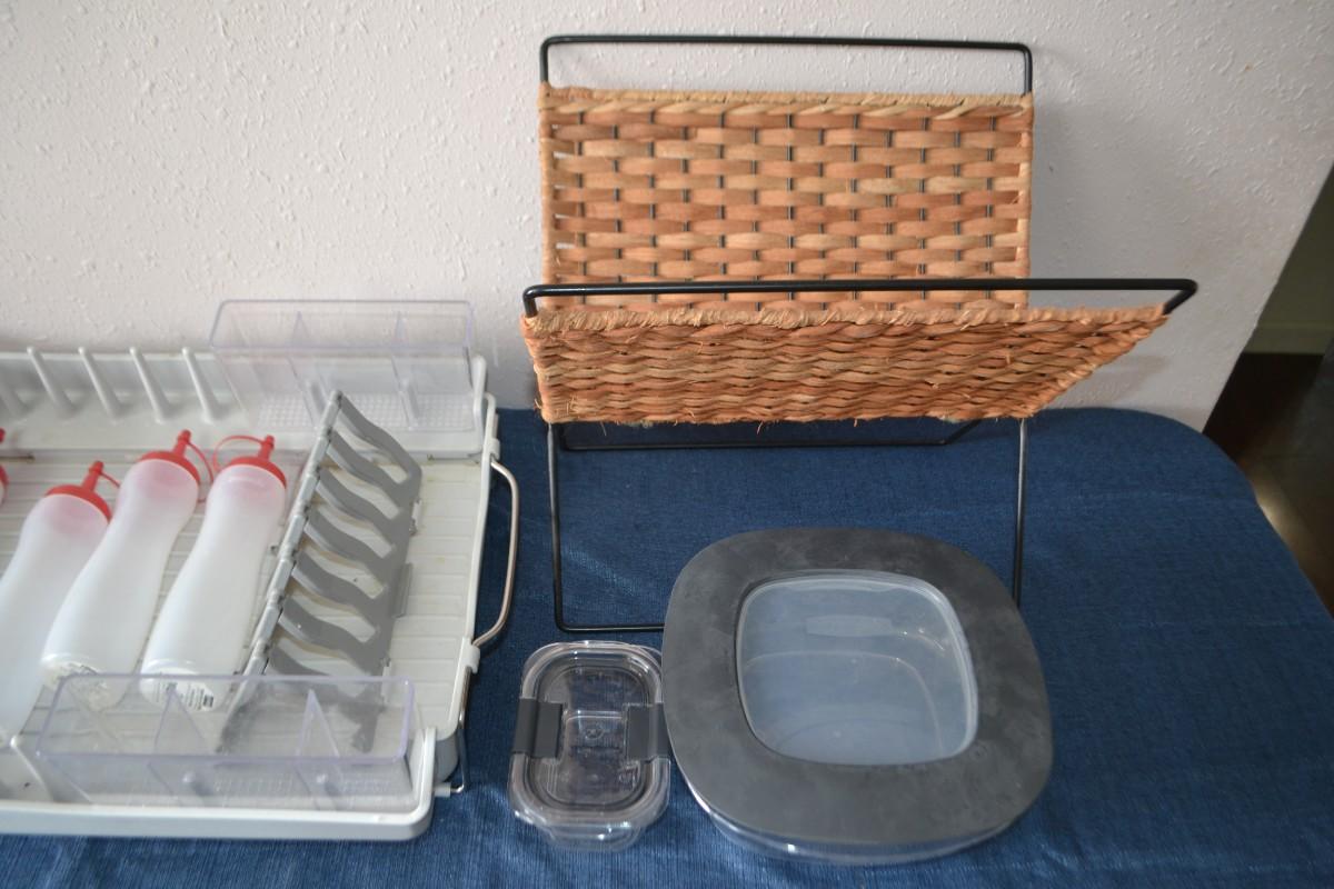 LOT 35. KITCHEN ITEMS AND MAGAZINE RACK