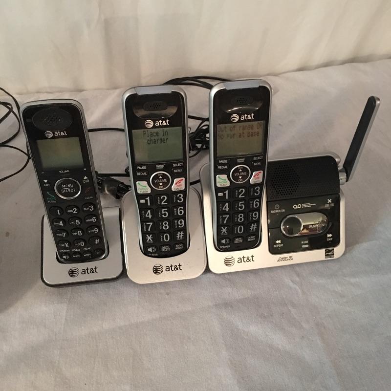Four AT&T phones. Two have answering machines and three are cordless. Also included is a RadioShack weather cube that could not be tested as battery was dead.