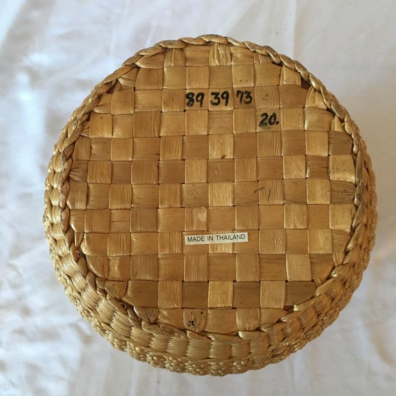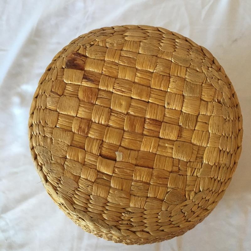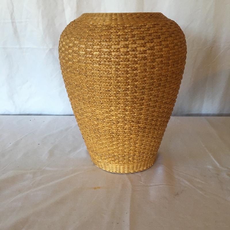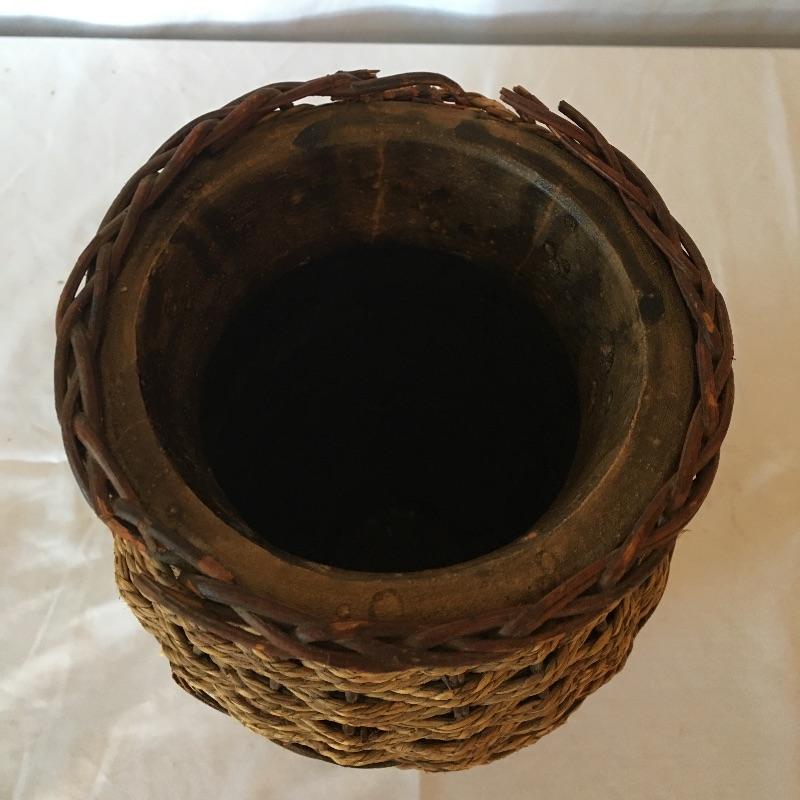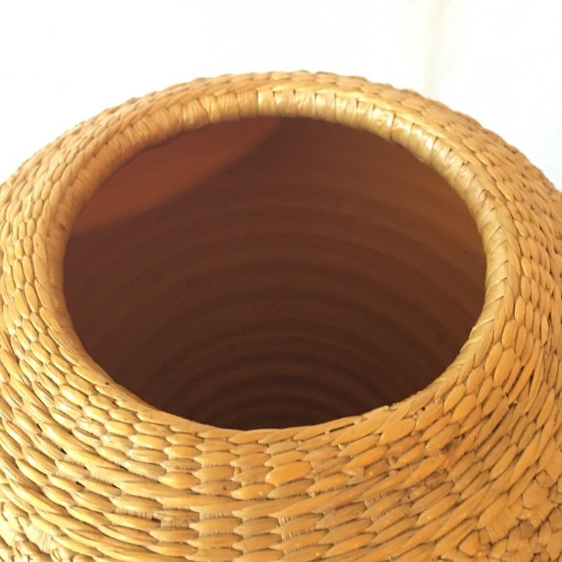 These three pieces include two pieces that are matching colors with the third piece wrapped in different textured ropes with one piece being loose on top. Have a great place to display your flowers with these three beauties. Tallest piece measures 6”D x 12” tall.