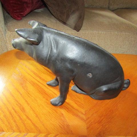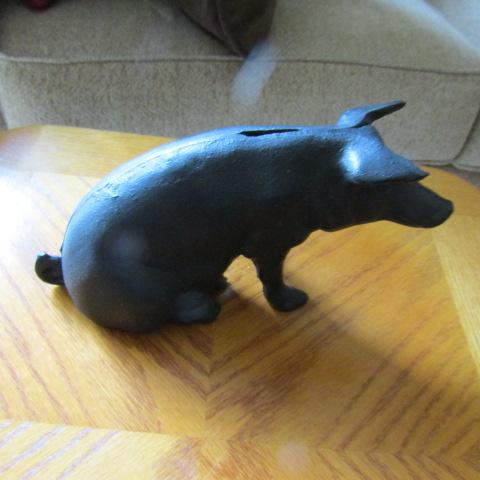 LOT 35 CAST IRON PIGGY BANK AND CORNBREAD PAN