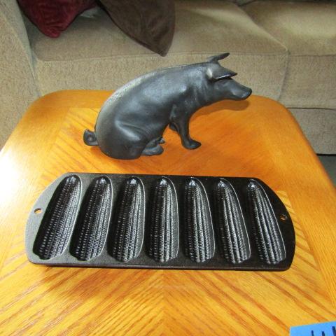 CAST IRON PIGGY BANK AND CORNBREAD PAN