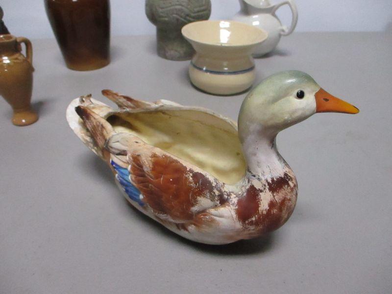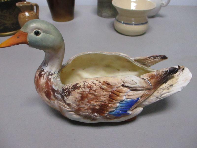 Mallard Duck Figurine Planter Ceramic - Spittoon - Some of the pottery does have a few chips