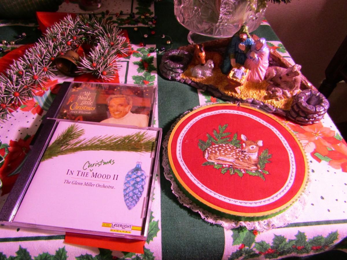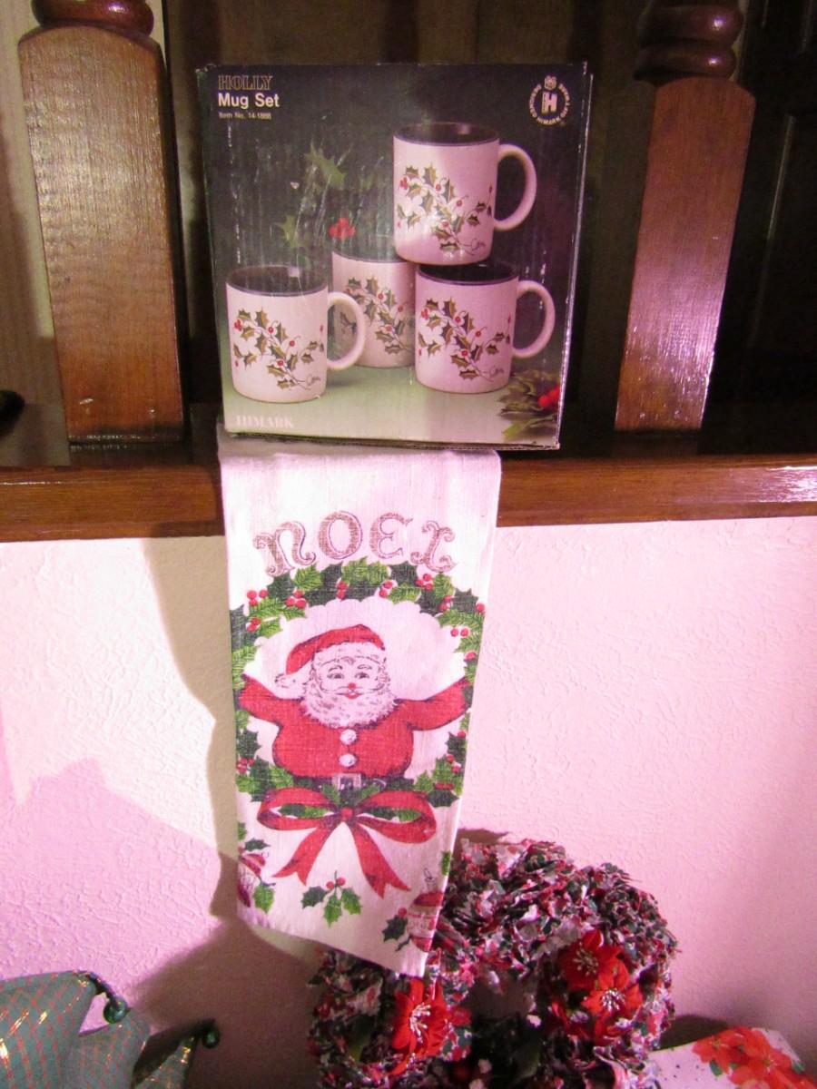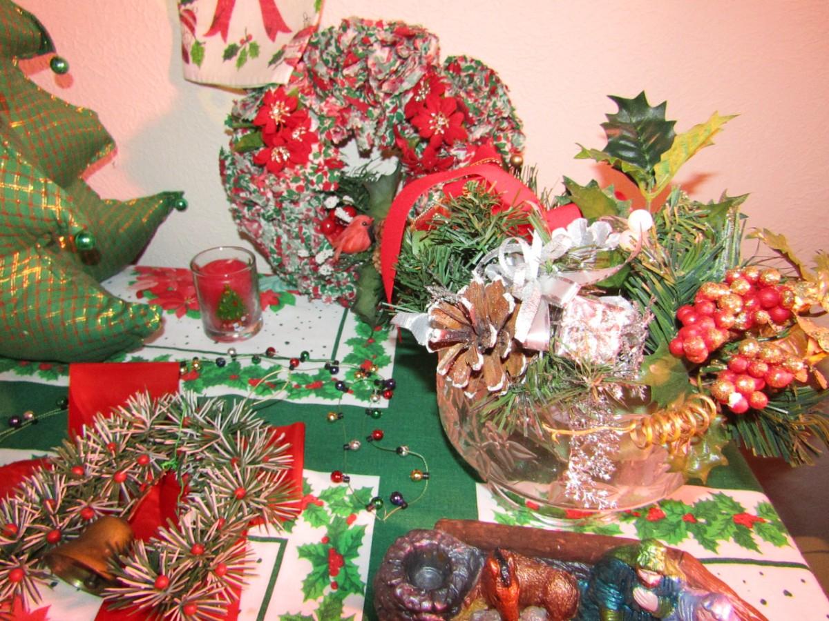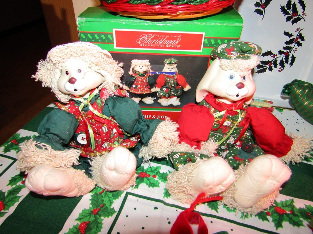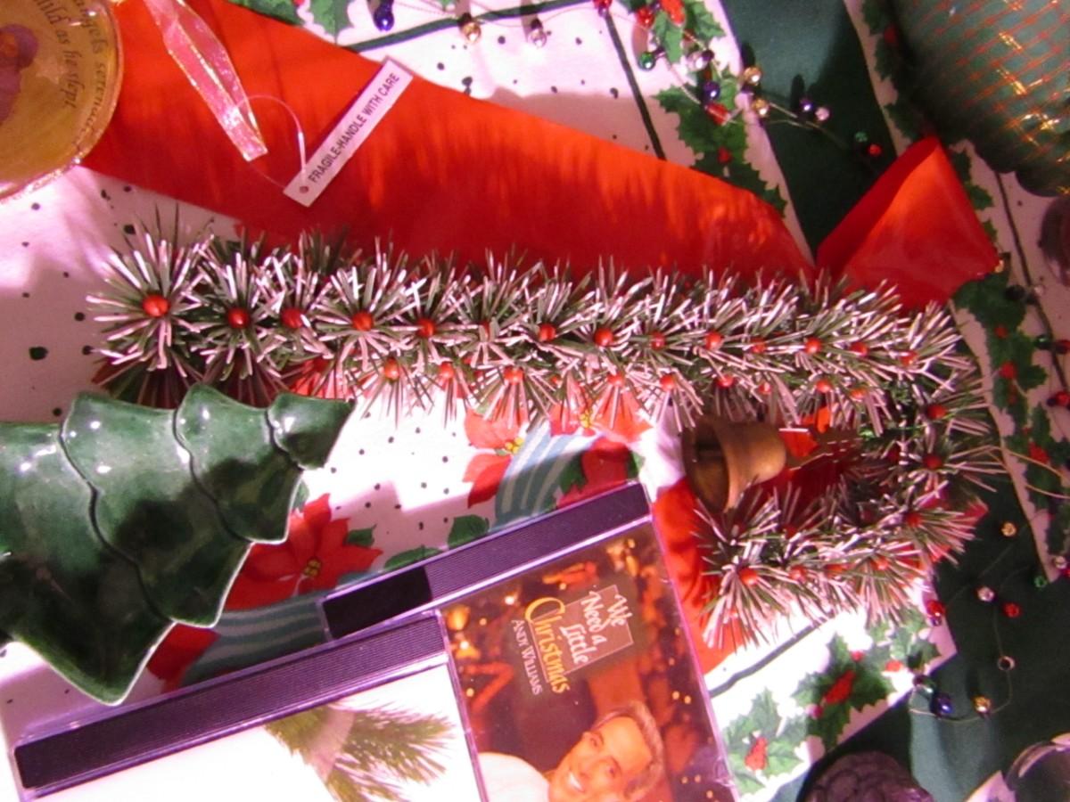 RECTANGLE TABLECLOTH, DISH TOWELS, PLUSH TREE, SMALL WREATH, TABLE DECORATION, NATIVITY SCENE CANDLE HOLDER, NIB COFFEE CUPS, HOUSE OF FLOYD HIP AND HOP CHARACTERS, STOCKINGS, BASKET AND MORE