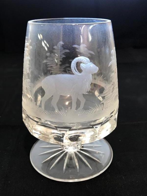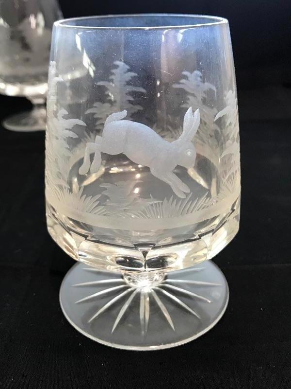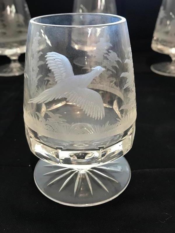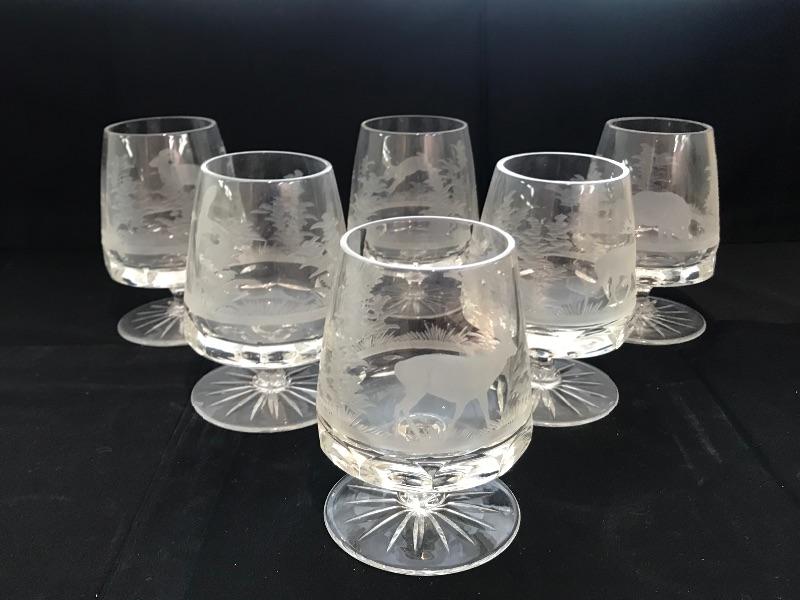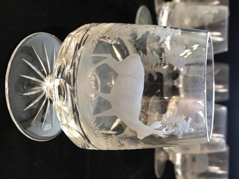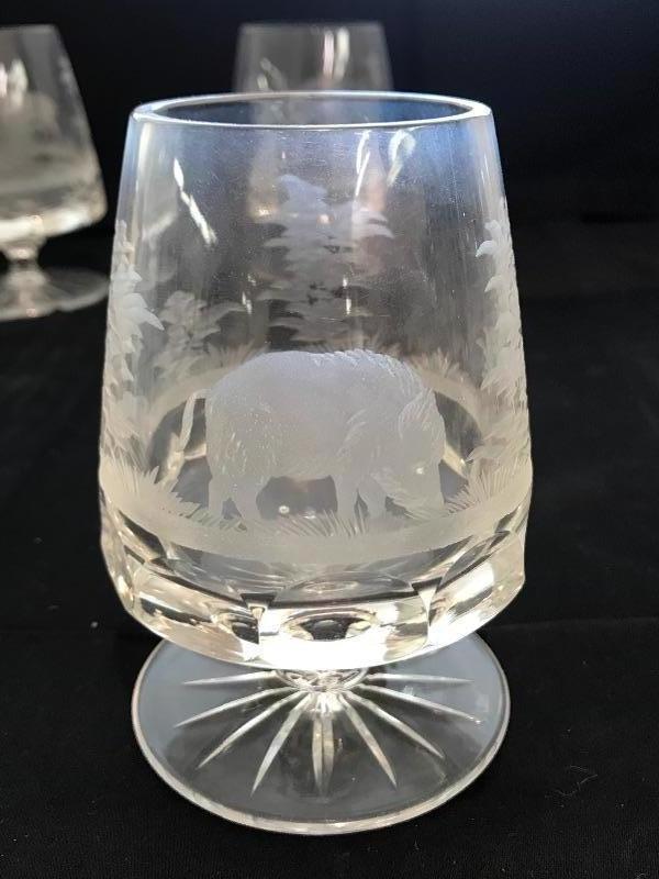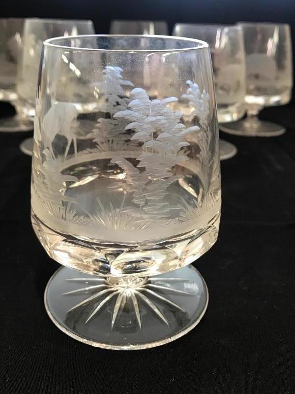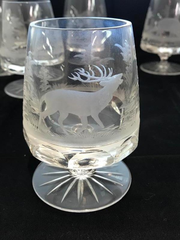Lot #35 Set of 6 Etched Crystal Bohemian Wildlife Glasses