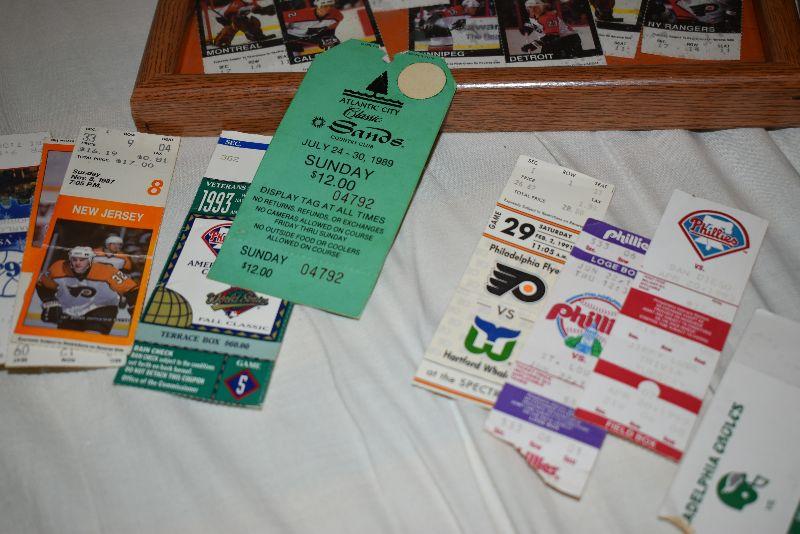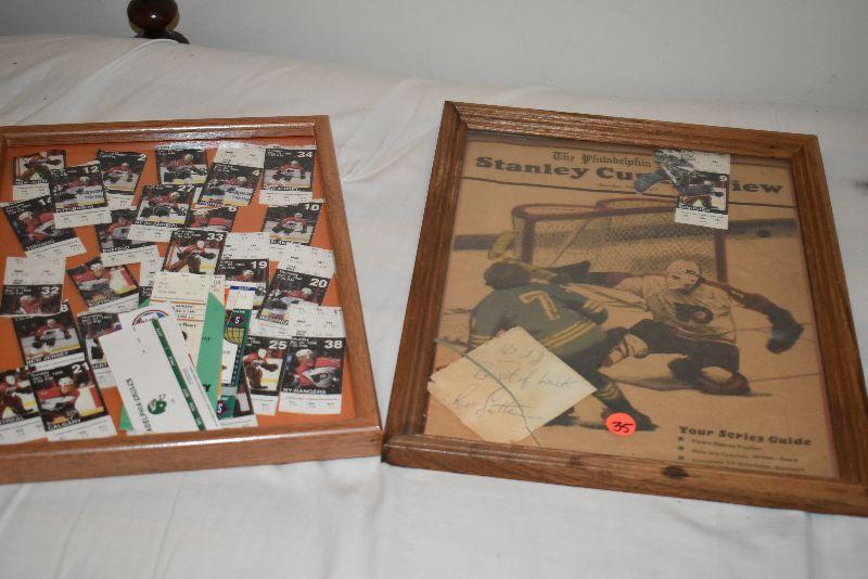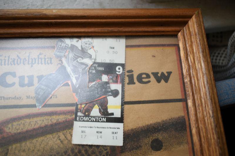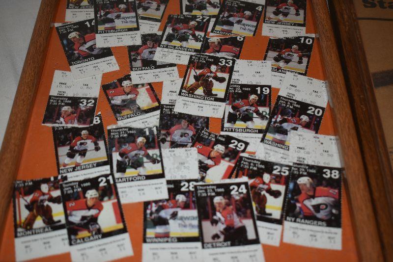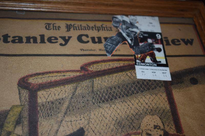Newspaper, ticket stub and autograph from Stanley Cup win. Ticket stubs from over 25 Flyers games.