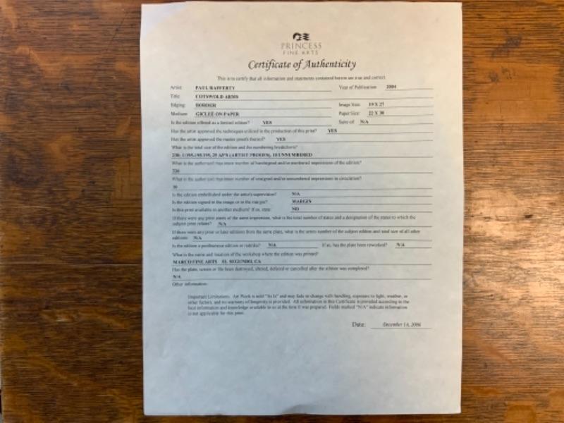Lot 35. Lot 35. Framed giclee on paper, “Cotswold Arms” by Paul Rafferty, (26.5” x 16.5”), Signed, (92 of 195), Certificate included--WAS $1250““NOW $625
