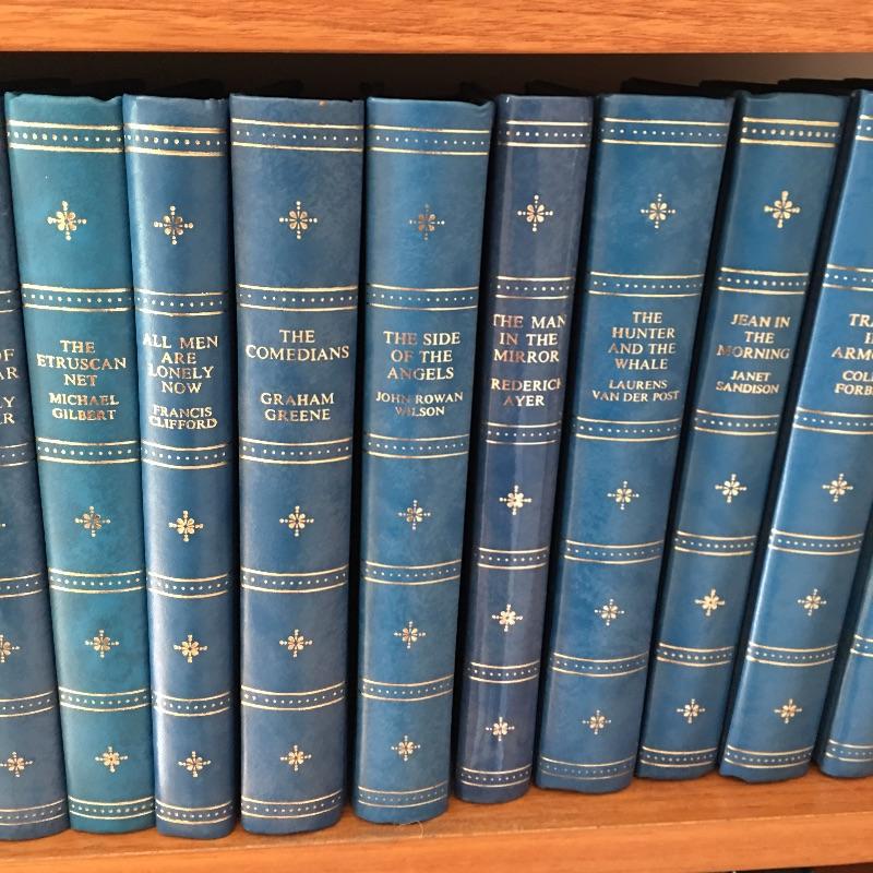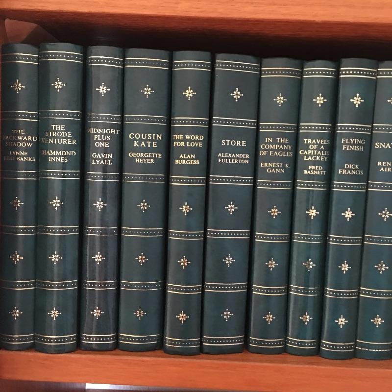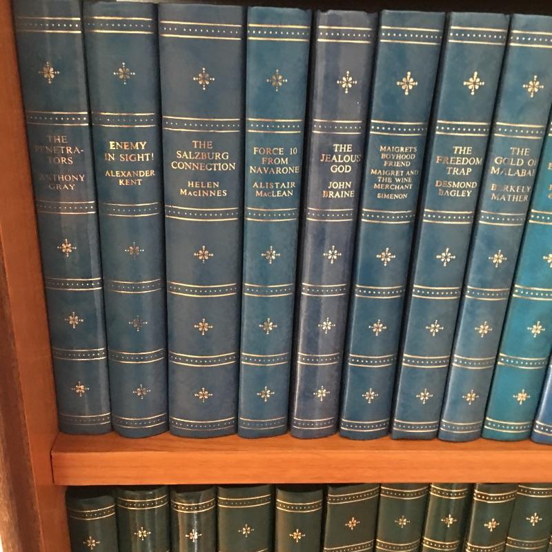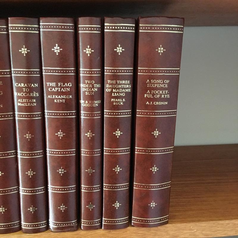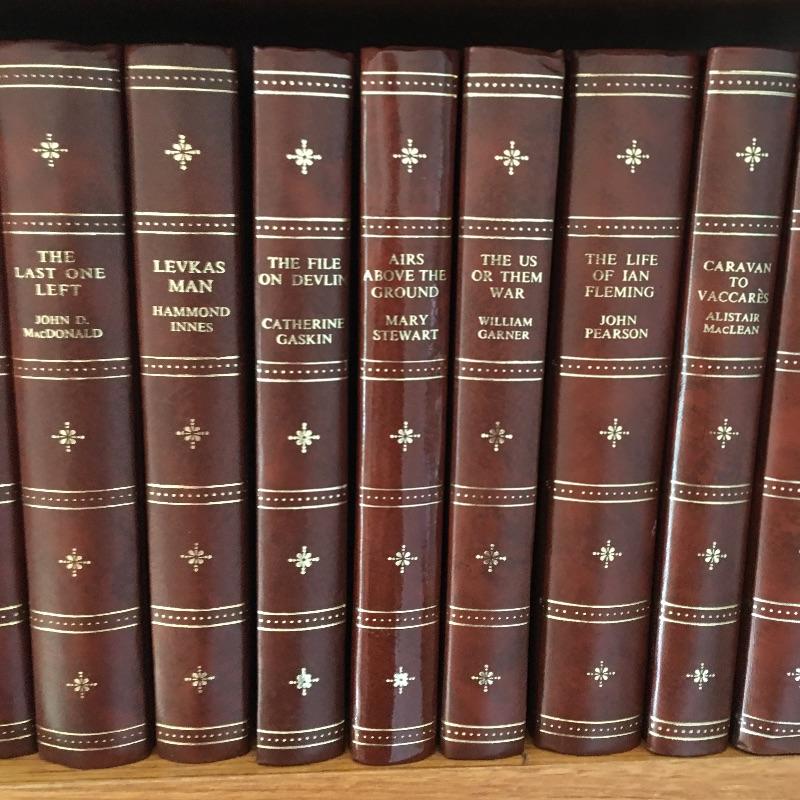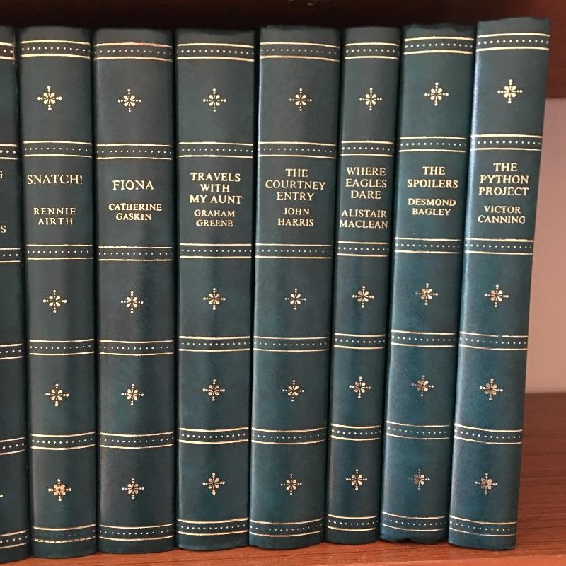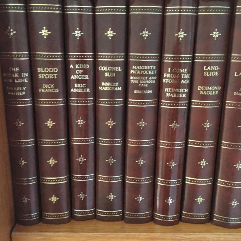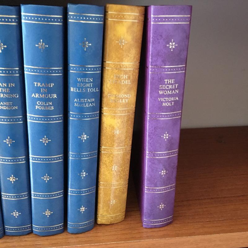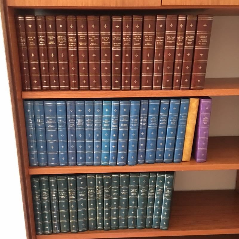 Leather bound books from Companion Book club. These titles are from the 60s and 70s and include authors Graham Greene, Desmond Bagley, Gavin Lyall, John Pearson, Victoria Holt and many more. There are three colored sets (not sure if they are complete) and one yellow and one purple. These books feel great in your hands and look great on your bookshelves.