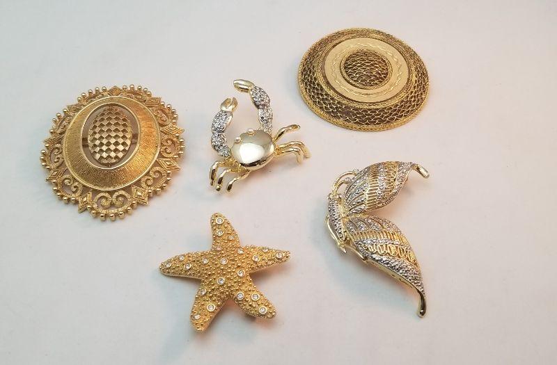 Lot #35 Lot of 5 Brooches - one Swarovski
