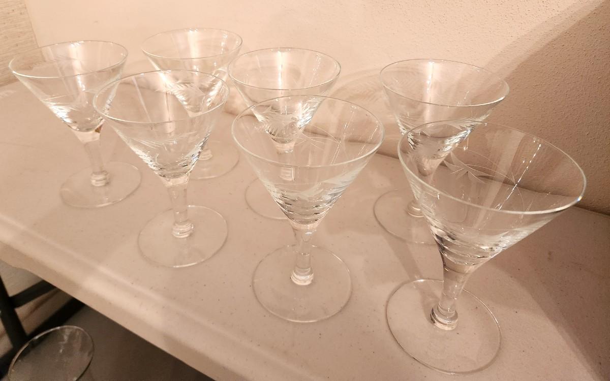 Lot #35 Lot of 7 Vintage Crystal Martini Glasses - Acid etched, foliate design